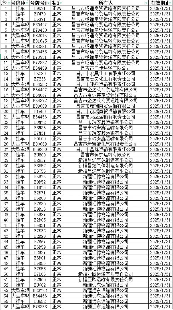 为了坚决防范发生道路交通事故,确保道路交通安全形势稳定,近期,昌吉市公安局交警大队对昌吉市1月“两客一危”逾期未检验、未报废及临界检验、报废车辆信息进行梳理。现将车辆信息进行公示(见附件),望相关人员尽快前往交管部门进行处理。