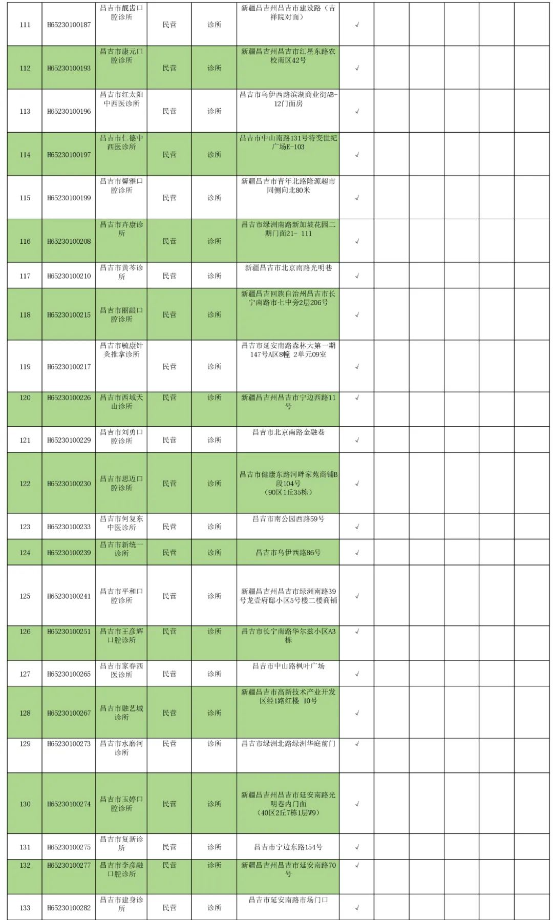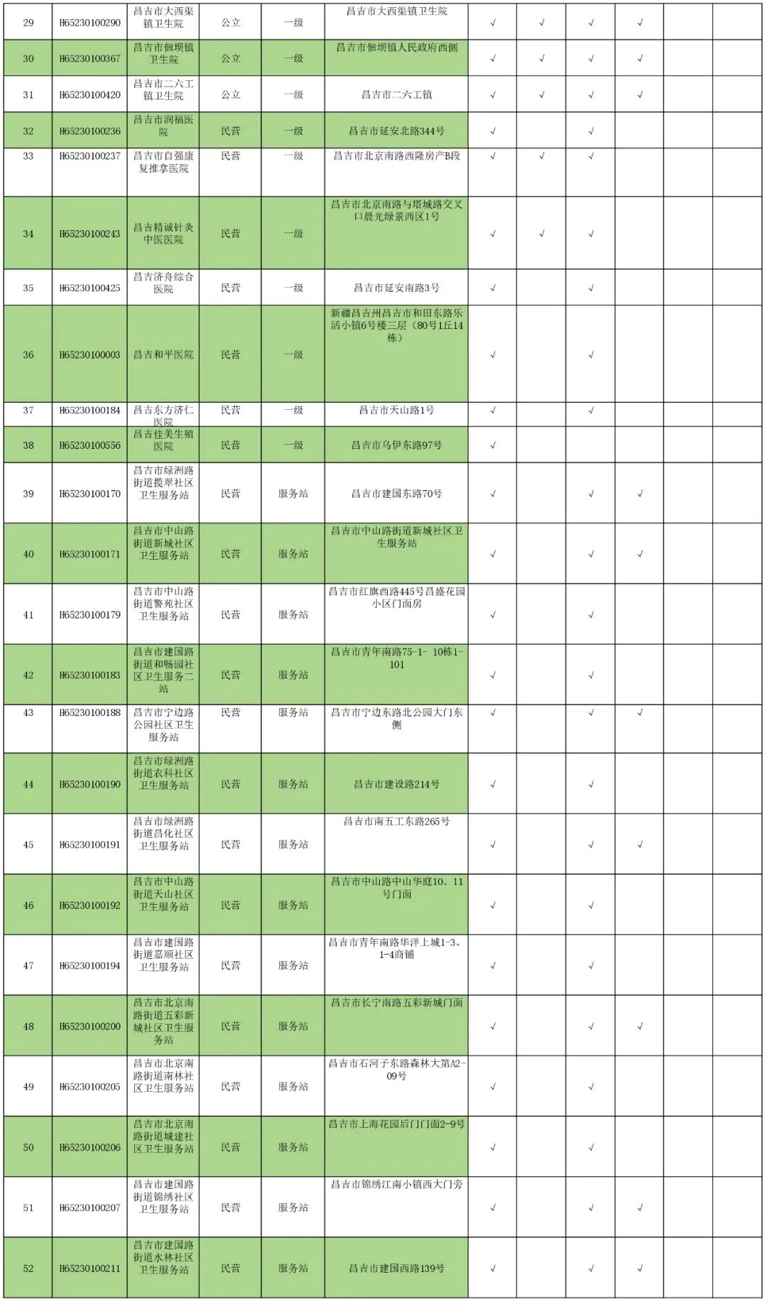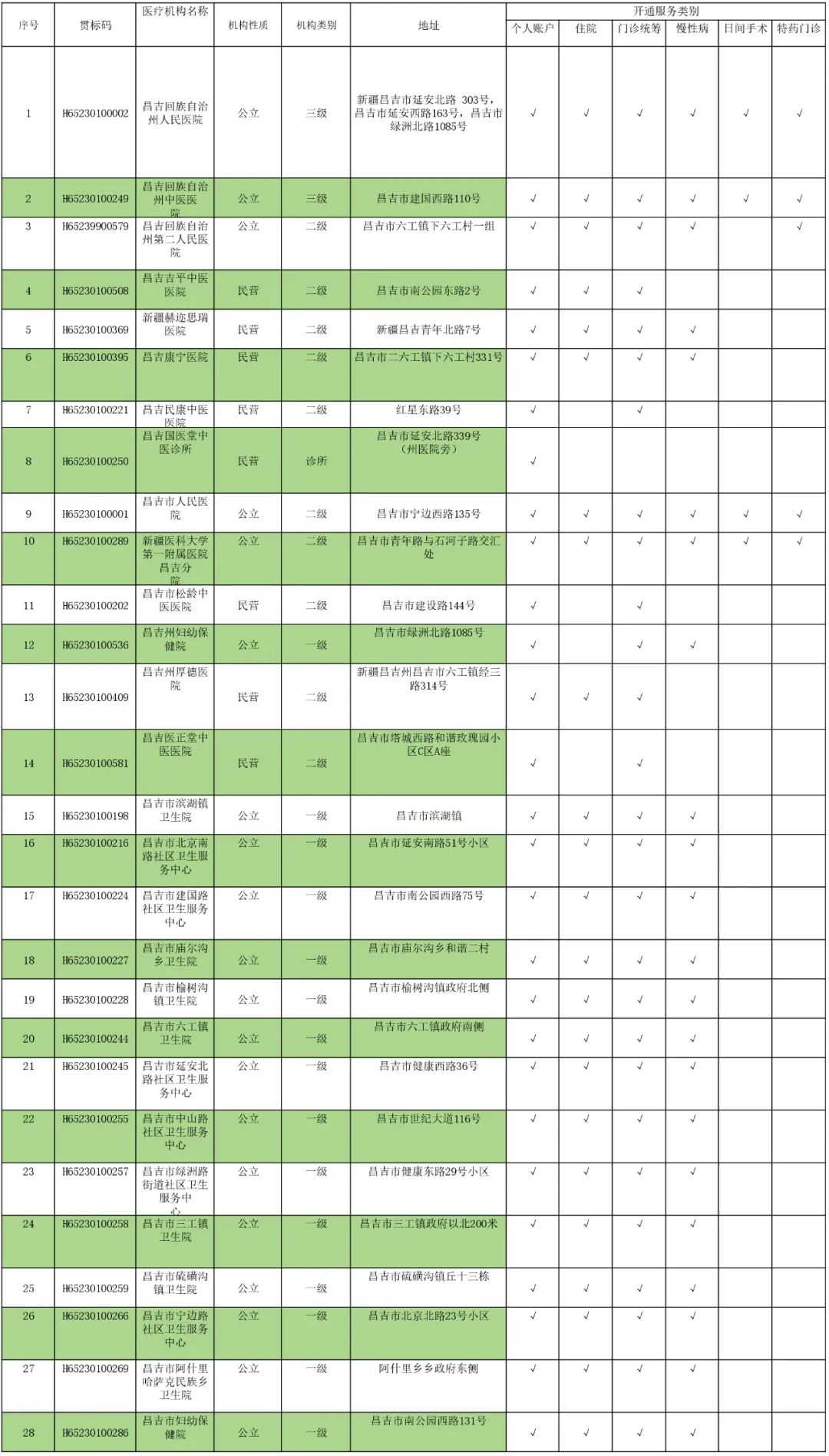 昌吉市(含州本级)医保定点医疗机构名单