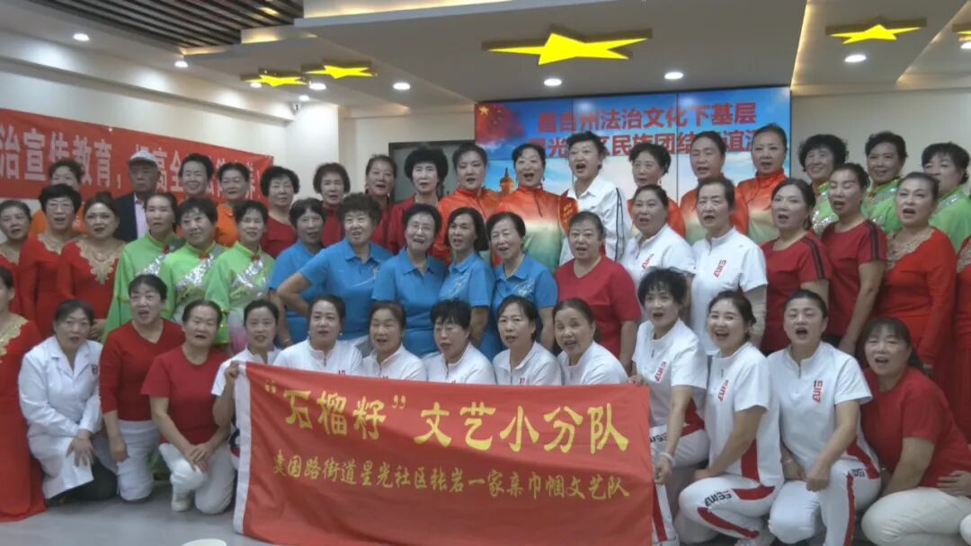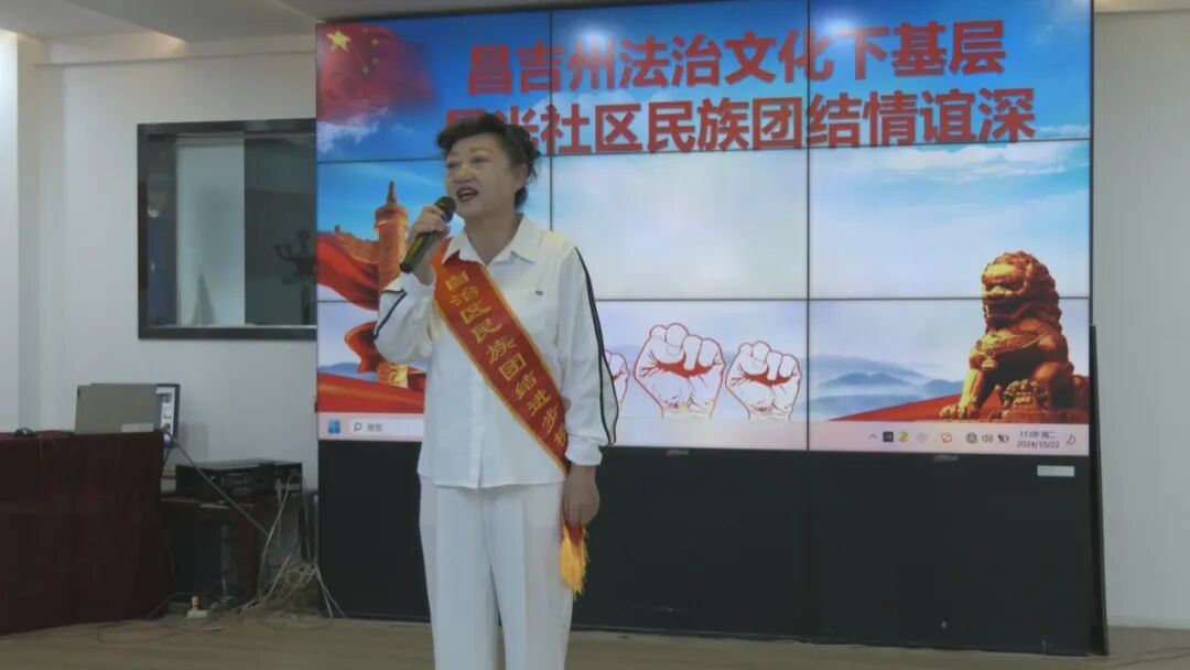 10月22日上午, “张岩一家亲”普法志愿队的成员在昌吉市建国路街道星光社区开展铸牢中华民族共同体意识暨“法治文化进社区”主题活动,邀请社区各族居民共同参与,为他们献上《和谐新疆》等精彩的歌舞表演,还精心准备了伴手礼与大家互动。