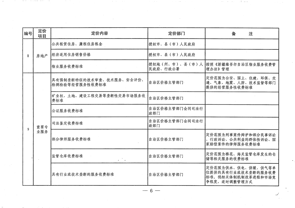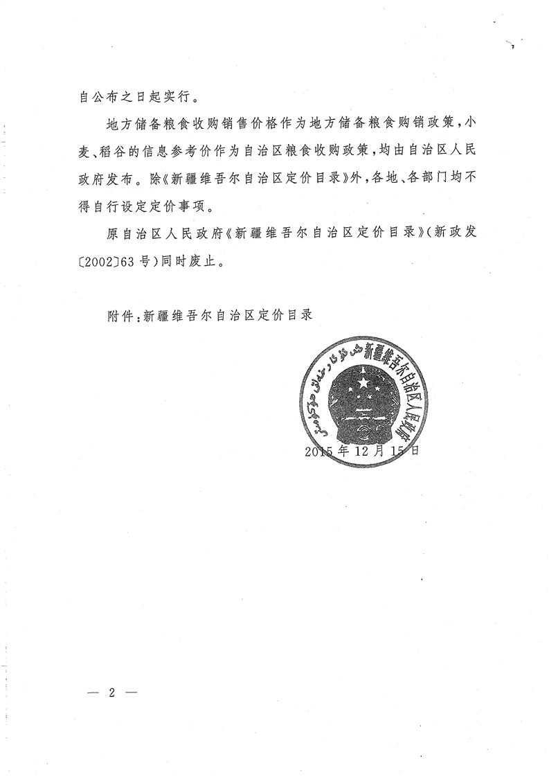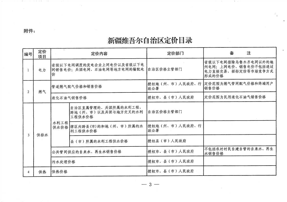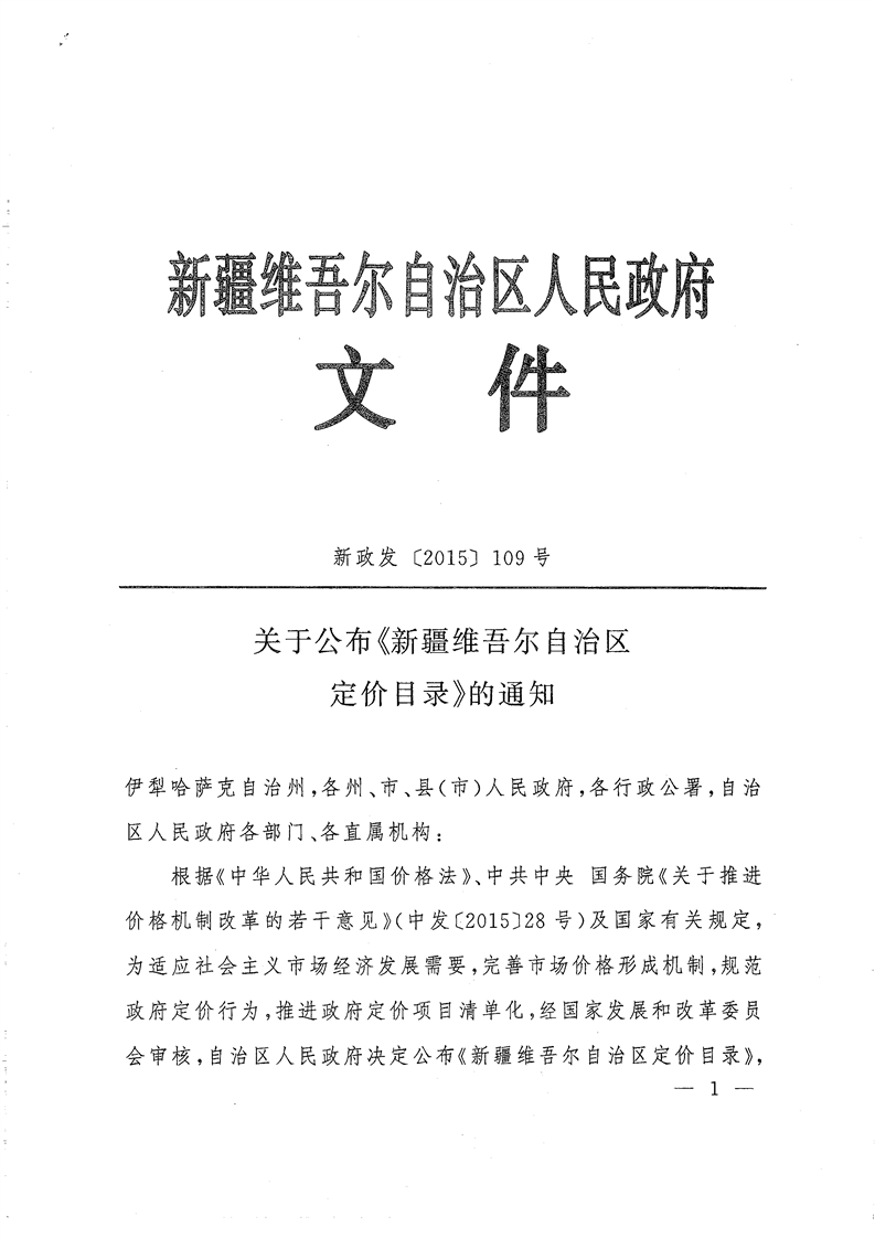 | 名 称 | 关于公布《新疆维吾尔自治区定价目录》的通知 | ||