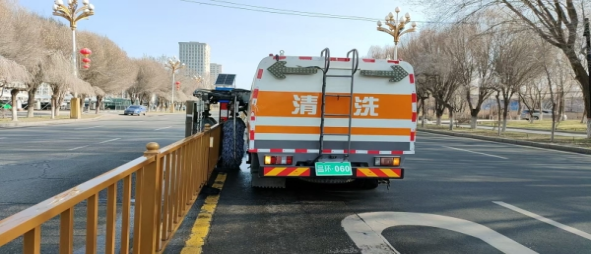 4月8日21点,笔者在乌伊西路看到7辆清扫车和11辆洒水车正在开展联合作业,对乌伊路上的泥沙和灰尘进行深度清洗,在环卫大型清扫机械经过之后,乌伊路上原先的泥沙和灰尘被冲洗的干干净净。