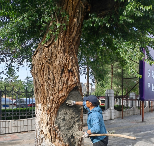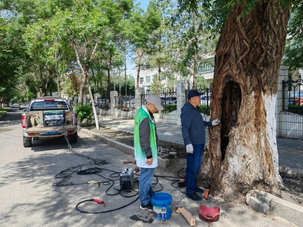 树龄在100年以上的树木被称之为古树,稀有、名贵或具有历史价值和纪念意义的树木被称之为名木。昌吉市建成区目前被录入国家古树名录数据库的古树有48棵,均为白榆,属于昌吉本地区的乡土树种。为了做好对现有古树的保护工作,昌吉市园林绿化管理中心植保站组织技术人员在对48棵古树逐一进行生长和管护情况的调查后,他们根据每棵古树的不同生长状况,逐一制定了抢救复壮的“专属方案”,努力让这些百年以上的“寿星”树继续焕发生命的风采。