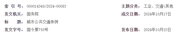 | 名 称 | 李强签署国务院令 公布《城市公共交通条例》 | ||