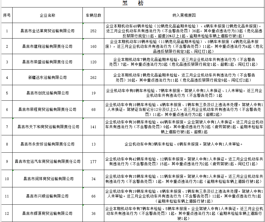 【道路运输监督检查结果信息】昌吉市4月“两客一危一货”企业红黑榜