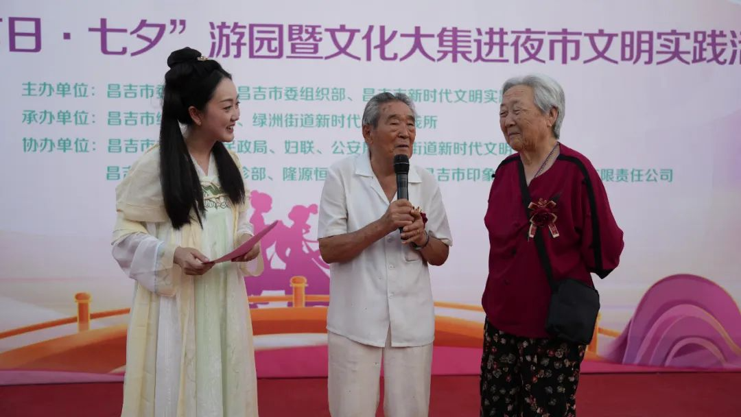 现场还邀请了一对结婚七十年的老夫妻分享他们的故事以及他们见证昌吉市多年来风光、城市变化的感受。呼吁大家追求美好的价值理念,增进家国情怀。昌吉市委宣传部副部长崔永彬表示,举办此次活动,主要是为了深入挖掘中华民族传统节日的文化内涵。通过形式多样的文化活动,引导市民群众树立正确的婚姻观、家庭观和爱情观。倡导文明新风,不断地丰富群众的精神文化生活。
