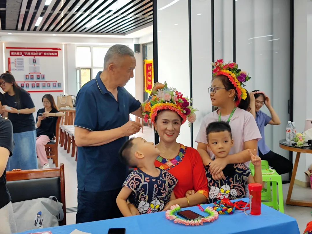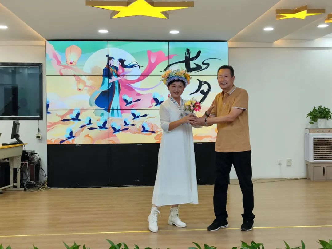 建国路街道星光社区举办“星光璀璨·爱在七夕”主题活动。社区工作人员和居民代表一起观看文艺节目,分享爱情故事,参与趣味游戏。学习国家级非物质文化遗产——簪花的制作。