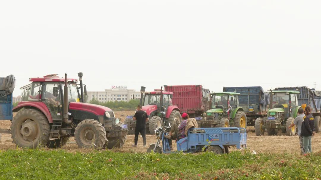 眼下正值中晚期番茄采收旺季,榆树沟镇前进村村民马晓明家的2100亩地已经成熟,镇、村干部及时协调番茄采收机和运输车辆,保障他家的番茄及时采收销售。