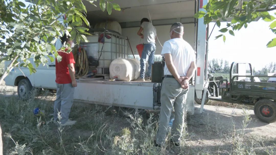滨湖镇下泉子村村民李永建:“打脱叶剂能提前让棉花叶子脱落,有利于棉花采收,提高棉花品质,所以我们提前把工作做好。”