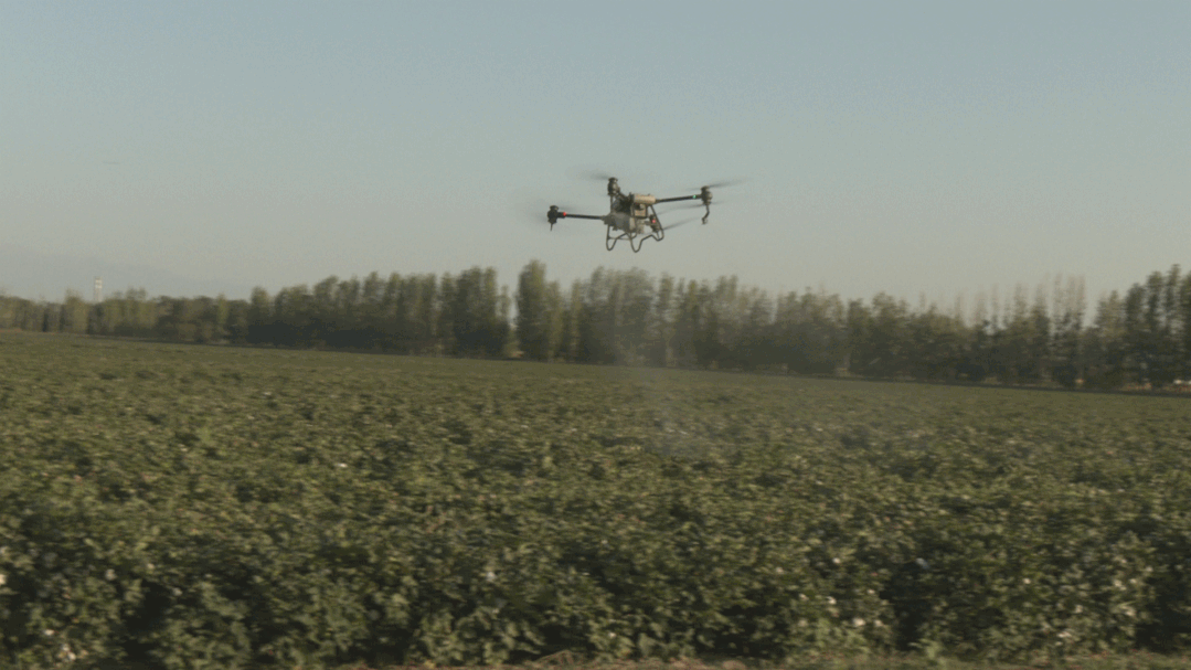 下泉子村今年种植机采棉2.4万亩。自9月4日起,村里就邀请昌吉市绿农植保无人机专业合作社开展机采棉脱叶剂喷施作业。