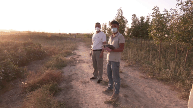 滨湖镇农业生产办干部杨波:“在打脱叶剂的过程中,我们要指导农户有序合理地进行加药,作业完的田地,我们要派人查看作业效果,确保棉田保证保质保量完成打药作业任务,为下一步棉花采收打下坚实基础。”