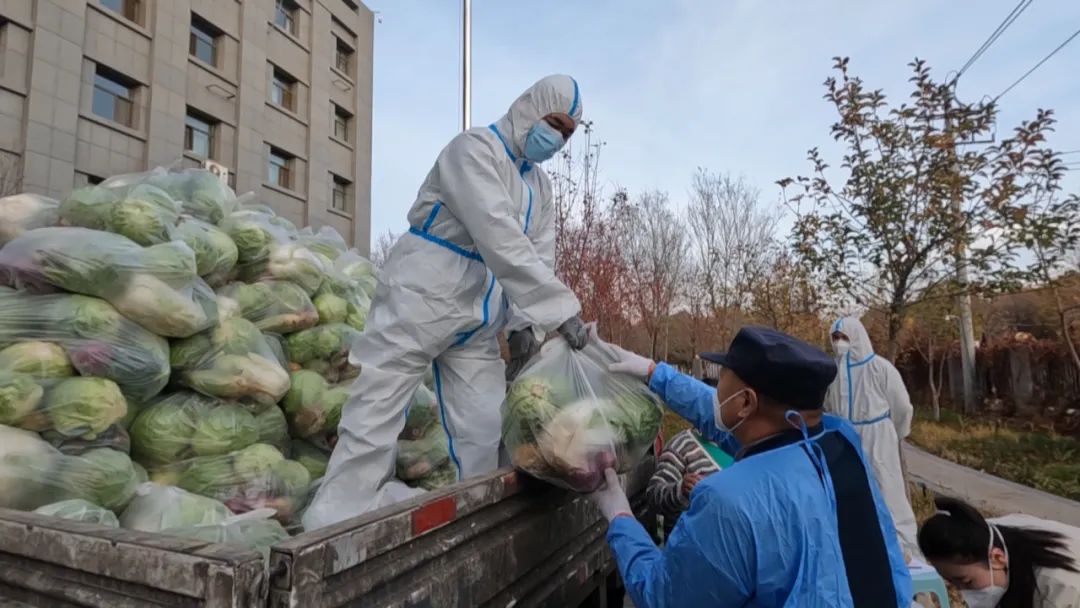 蔬菜包采取街道、社区逐级发放的方式,于10月28日至30日全部发放完毕。建国路街道融锦城小区此次分到了10份蔬菜包,在做好各环节的消杀之后,爱心蔬菜被及时送到了居民手中。