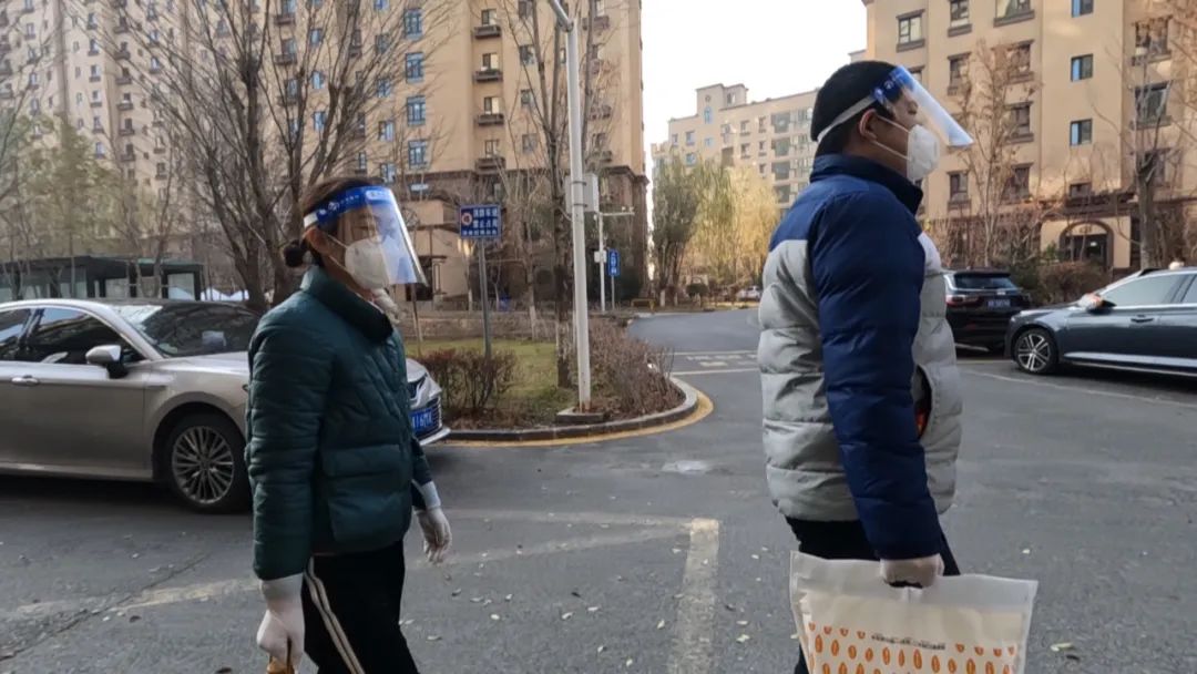 11月14日,建国路街道明苑社区居民张袖玲领到了一份粮油包,这让她十分感动。