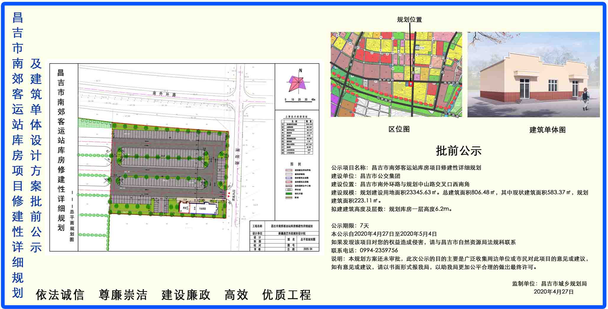 昌吉市南郊客运站库房项目修建性详细规划及建筑单体设计方案批前公示