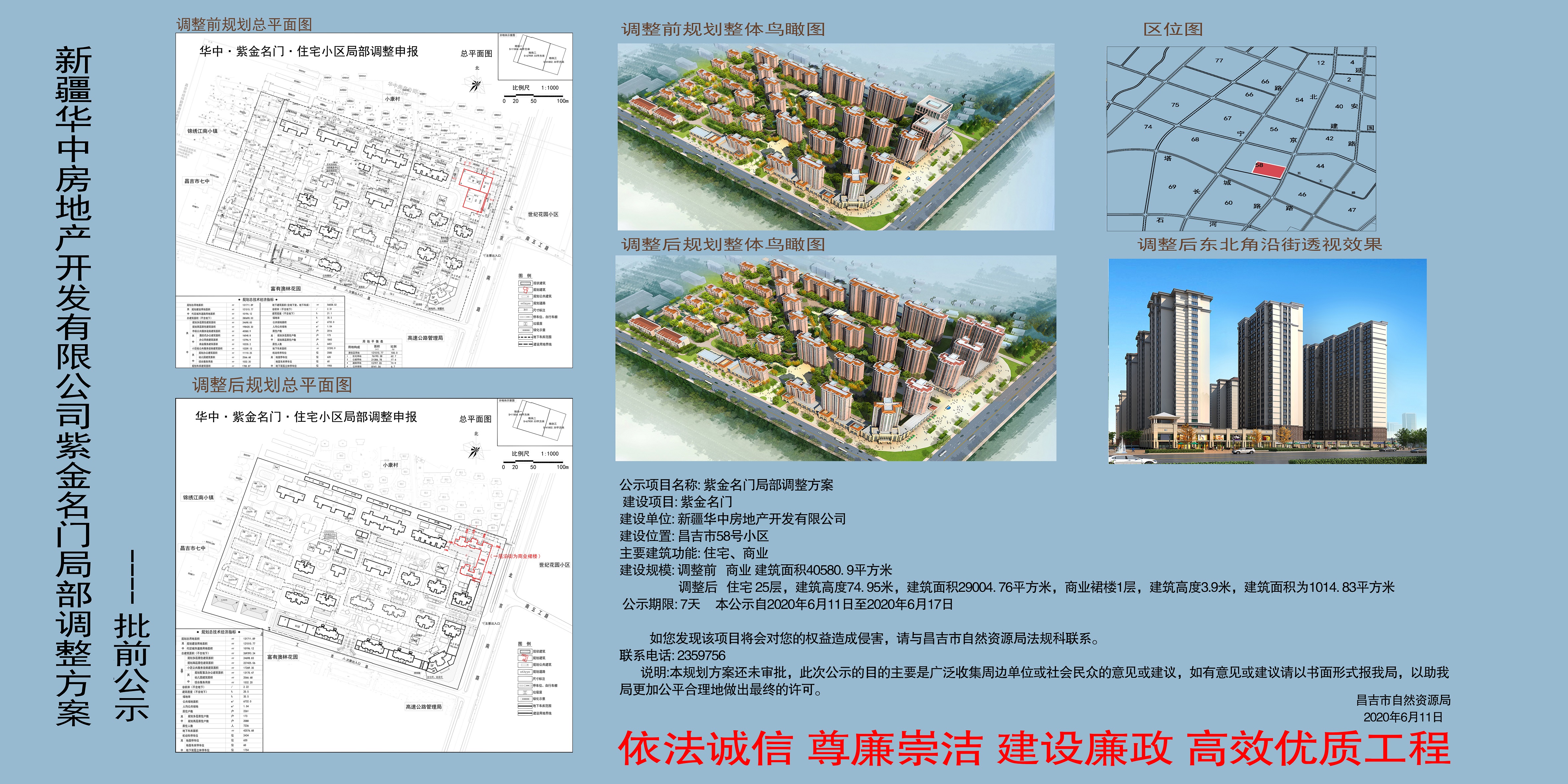 新疆华中房地产开发有限公司紫金名门局部调整方案批前公示