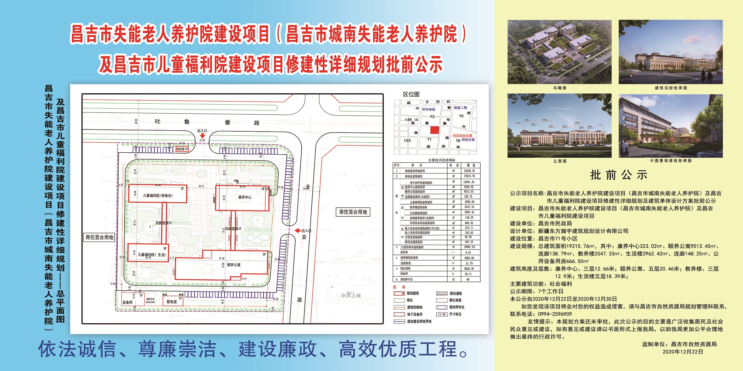 | 名 称 | 昌吉市失能老人养护院建设项目(昌吉市城南失能老人养护院)修建性详细规划批前公示 | ||