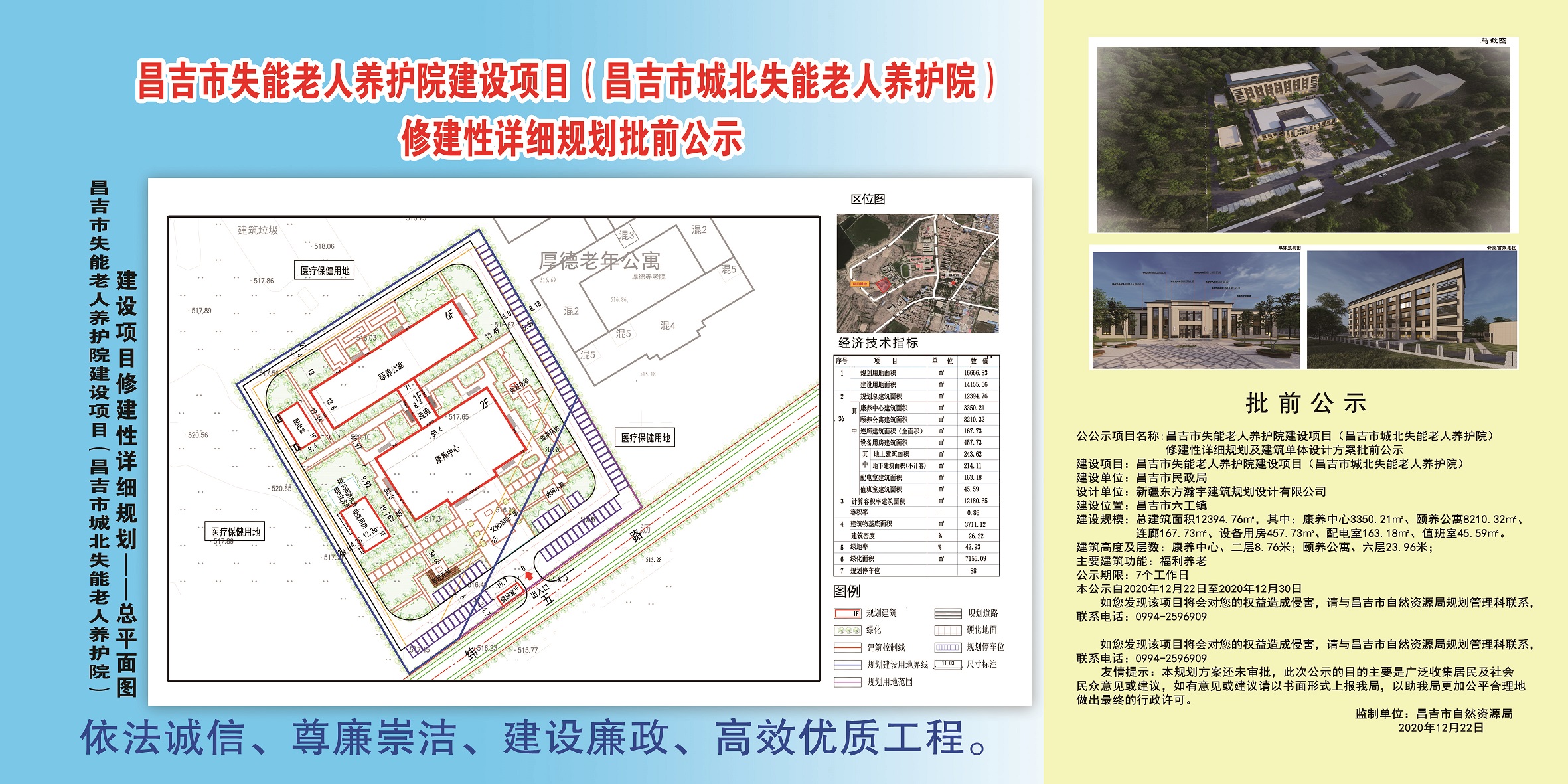 | 名 称 | 昌吉市失能老人养护院建设项目(昌吉市城北失能老人养护院)修建性详细规划批前公示 | ||