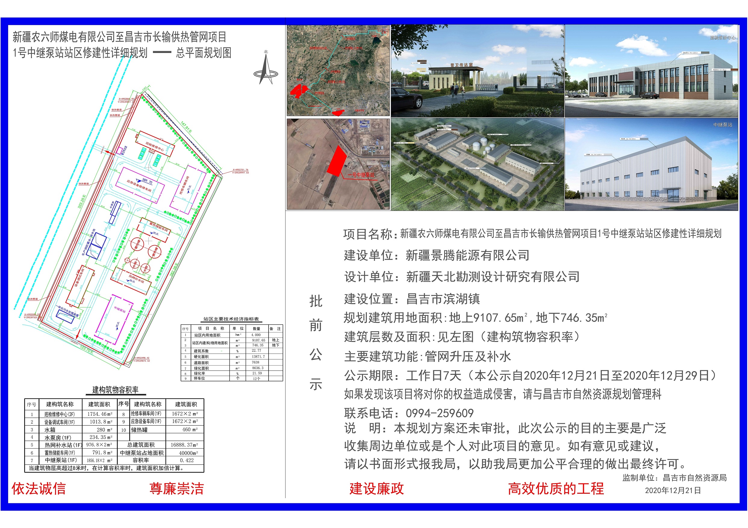新疆农六师煤电有限公司至昌吉市长输供热管网项目1号中继泵站站区修建性详细规划批前公示