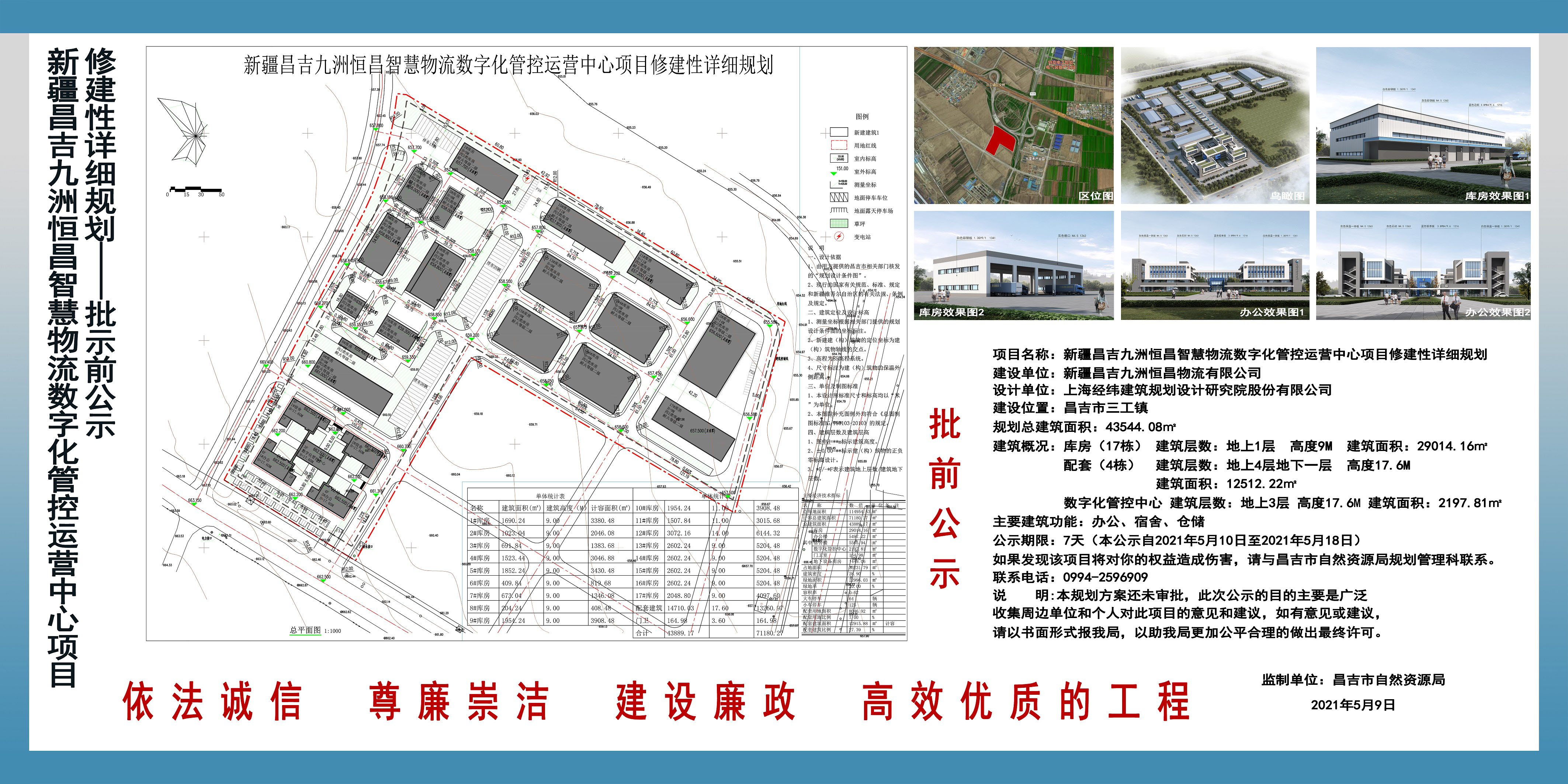新疆昌吉九洲恒昌智慧物流数字化管控运营中心项目修建性详细规划批前公示