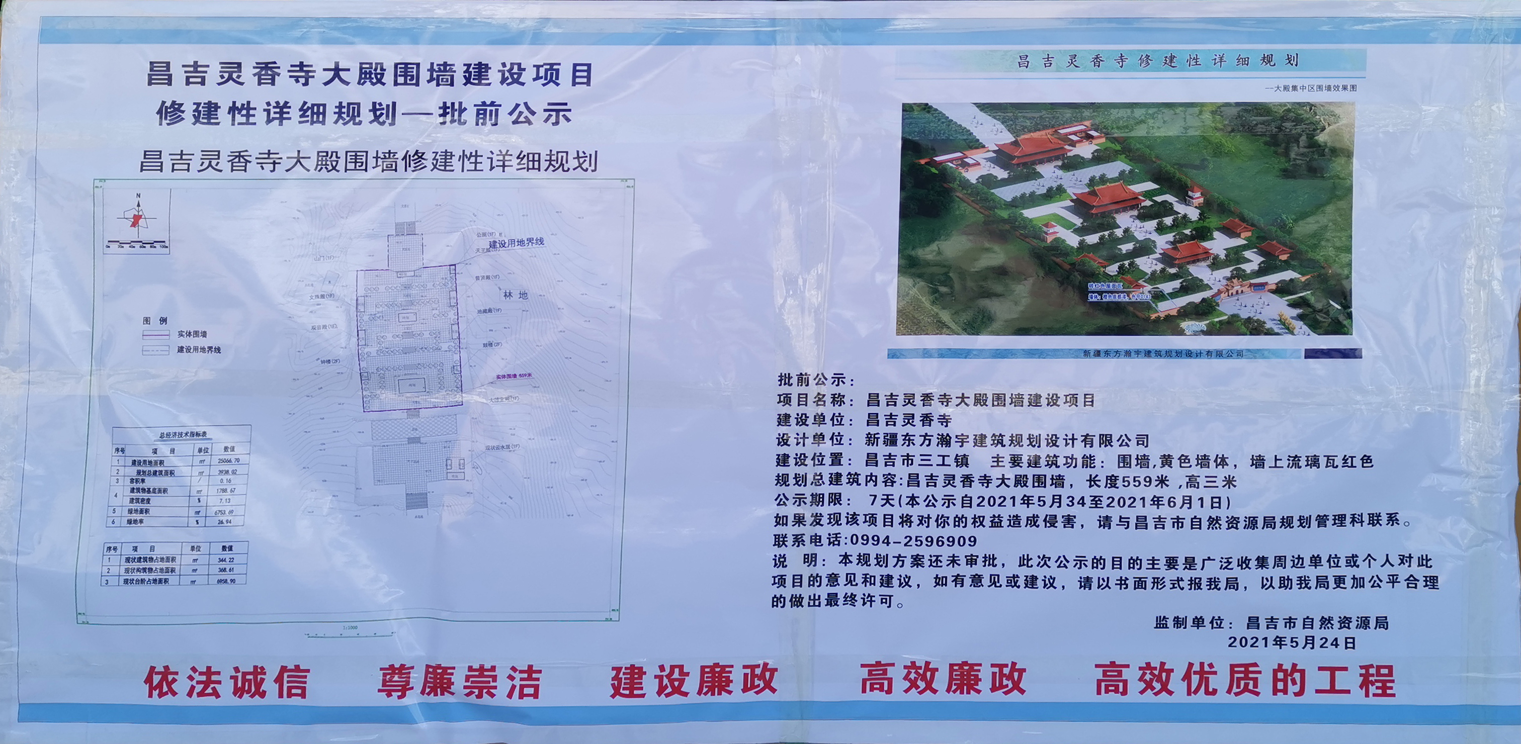 昌吉灵香寺大殿围墙建设项目修建性详细规划批前公示
