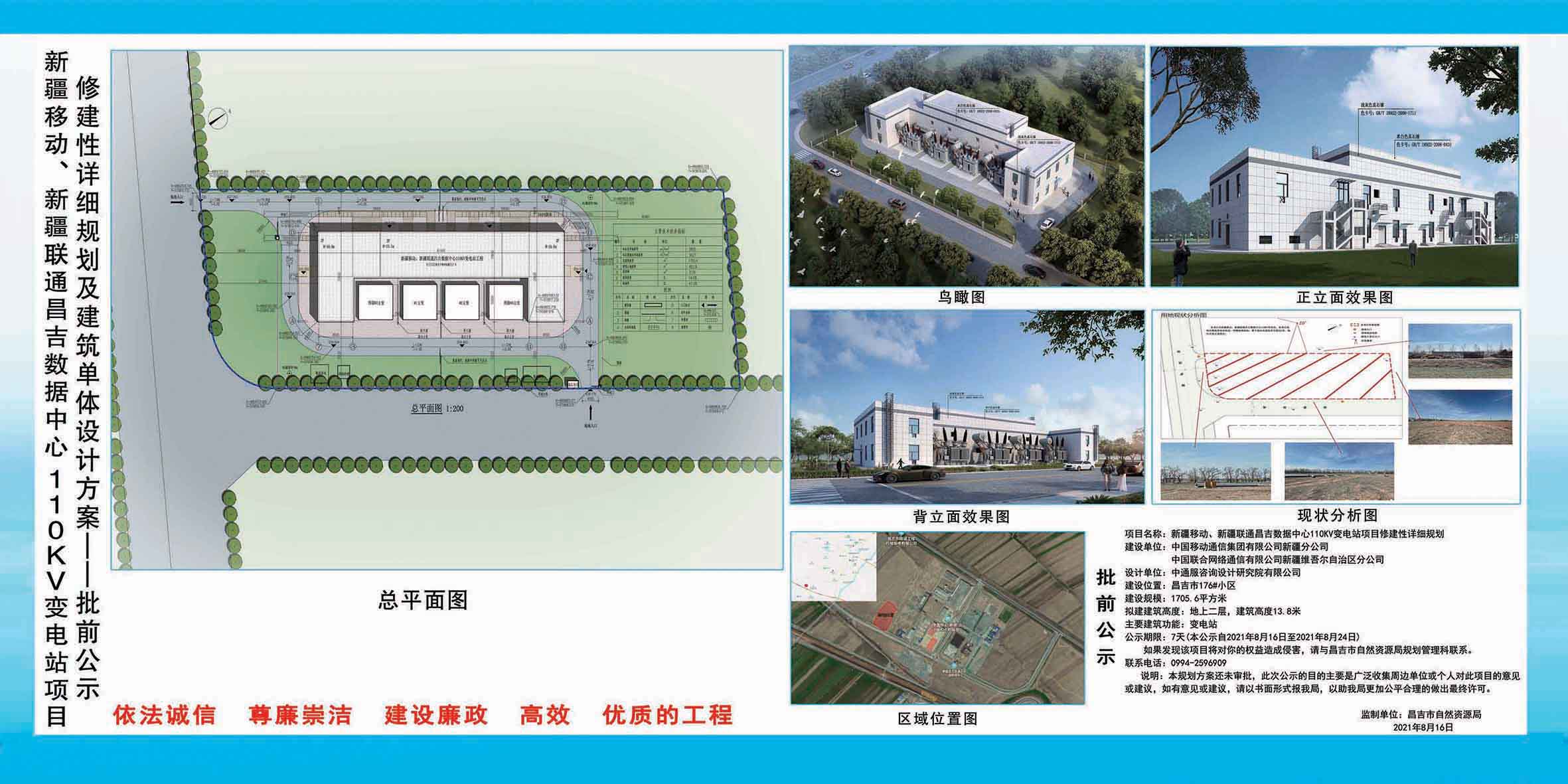 移动联通昌吉数据中心110KV变电站项目修建性详细规划批前公示