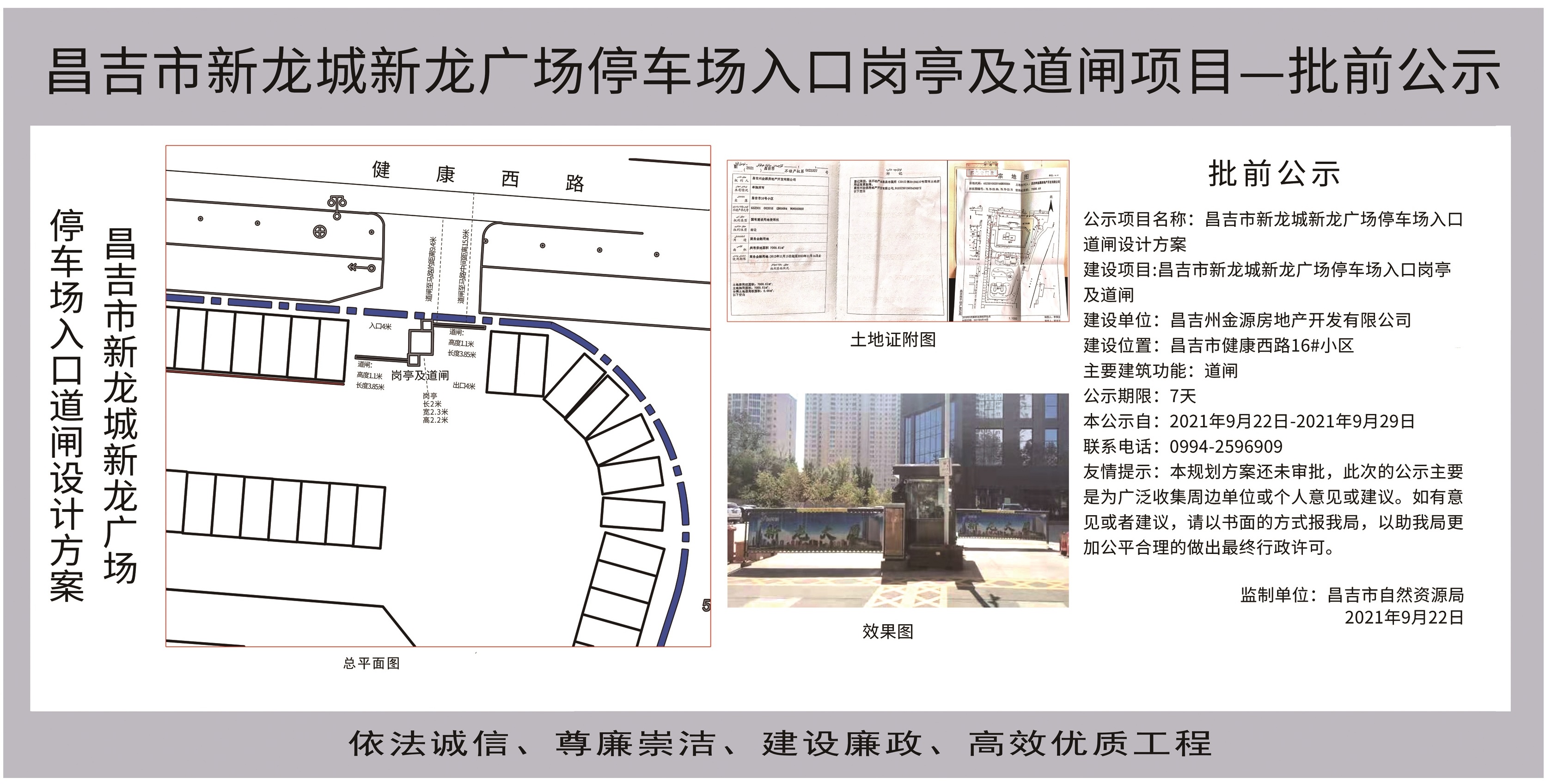 昌吉市新龙城新龙广场停车场入口岗亭及道闸项目批前公示