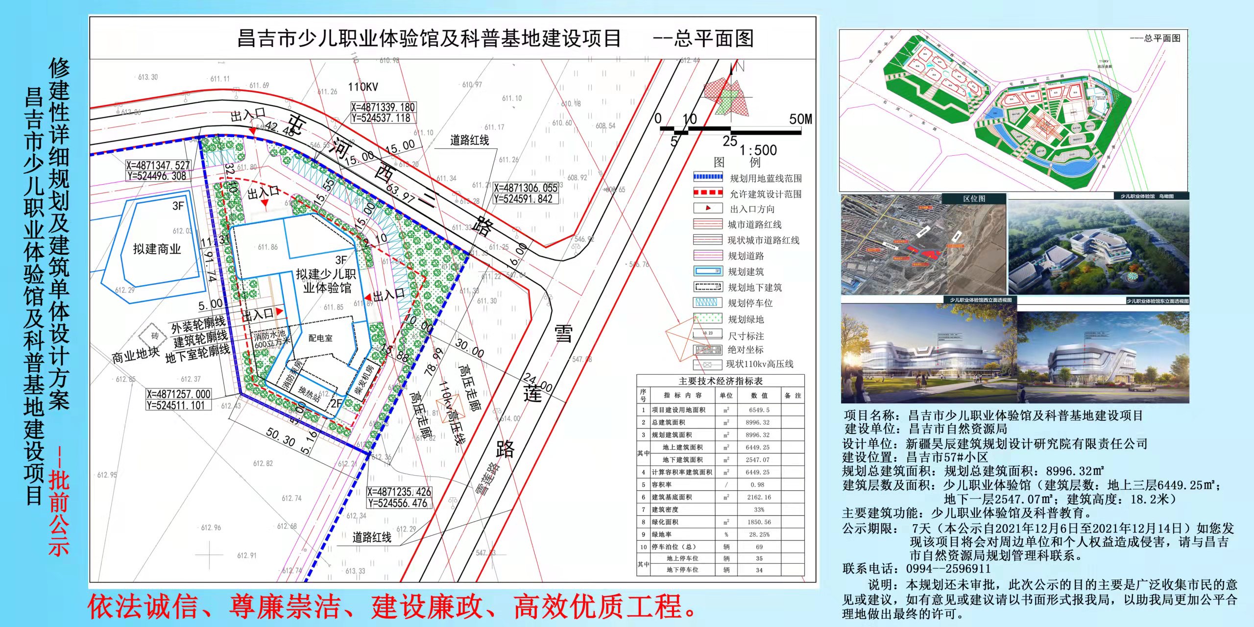 昌吉市少儿职业体验馆及科普基地建设项目修建性详细规划及建筑单体设计方案批前公示
