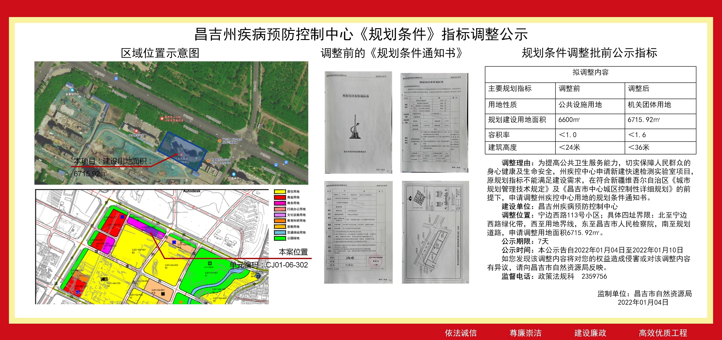 昌吉州疾病预防控制中心《规划条件》指标调整公示