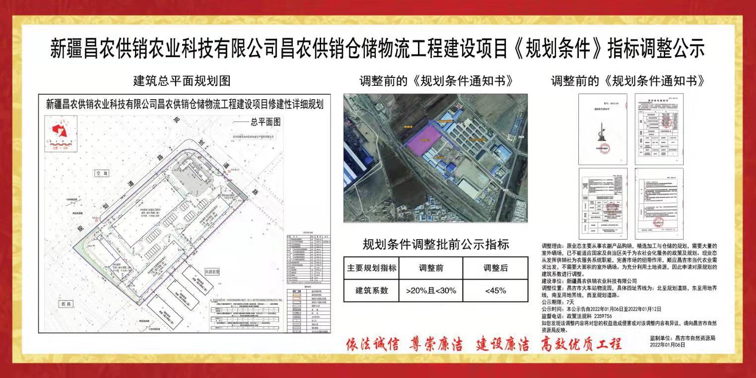 新疆昌农供销农业科技有限公司昌农供销仓储物流工程建设项目《规划条件》指标调整公示