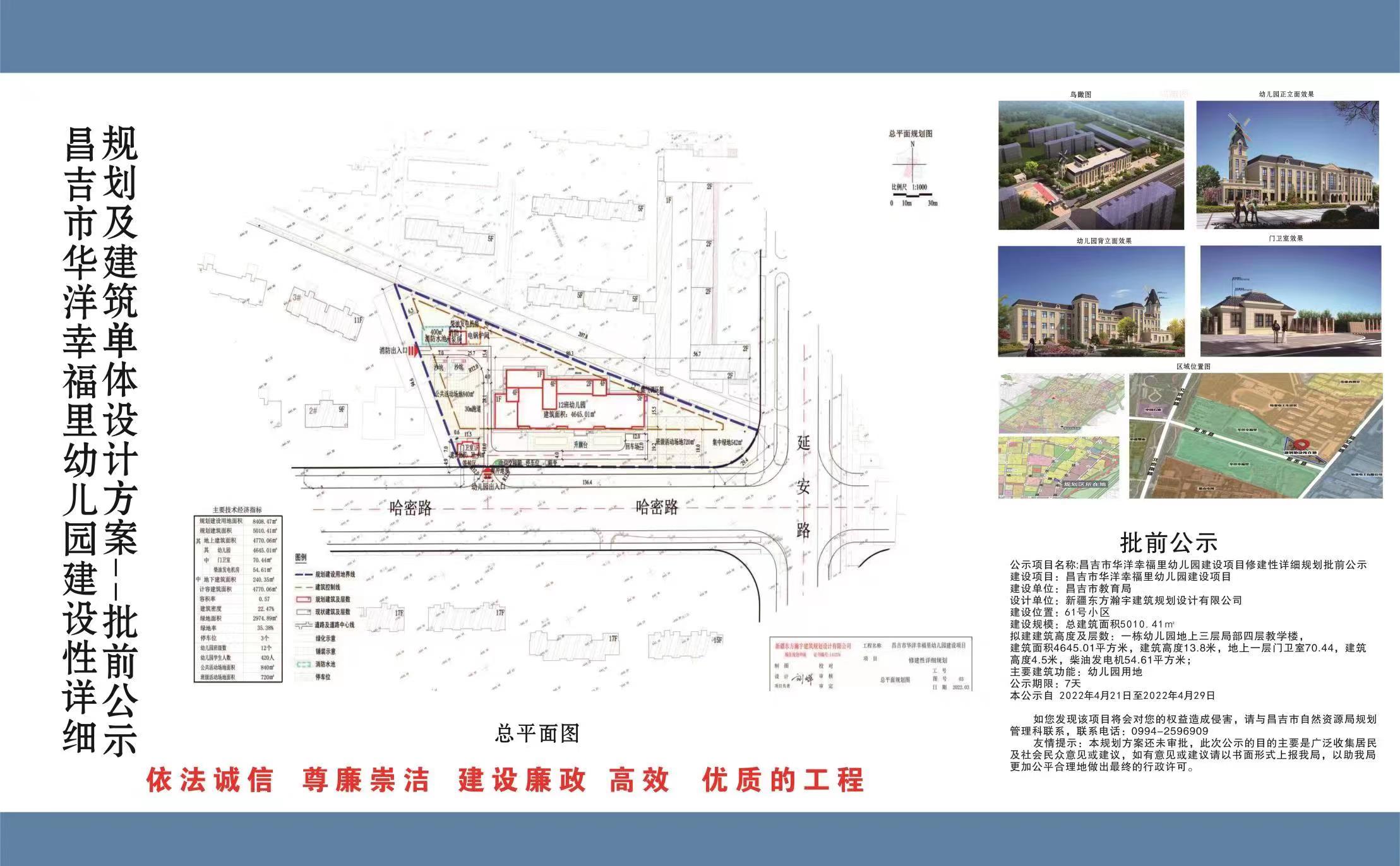 昌吉市华洋幸福里幼儿园修建性详细规划批前公示