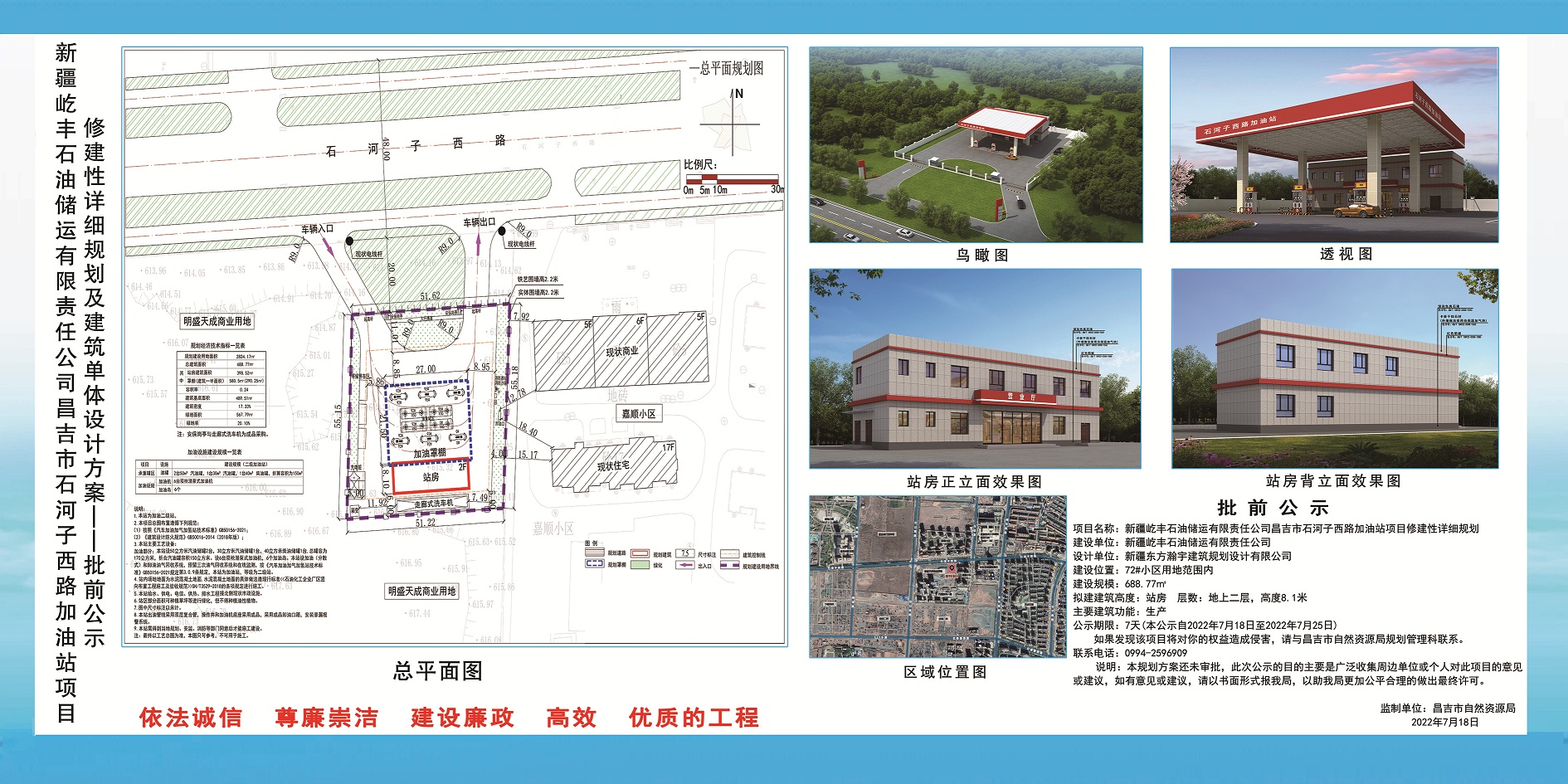 | 名 称 | 新疆屹丰石油储运石河子西路加油站项目修建性详细规划批前公示 | ||