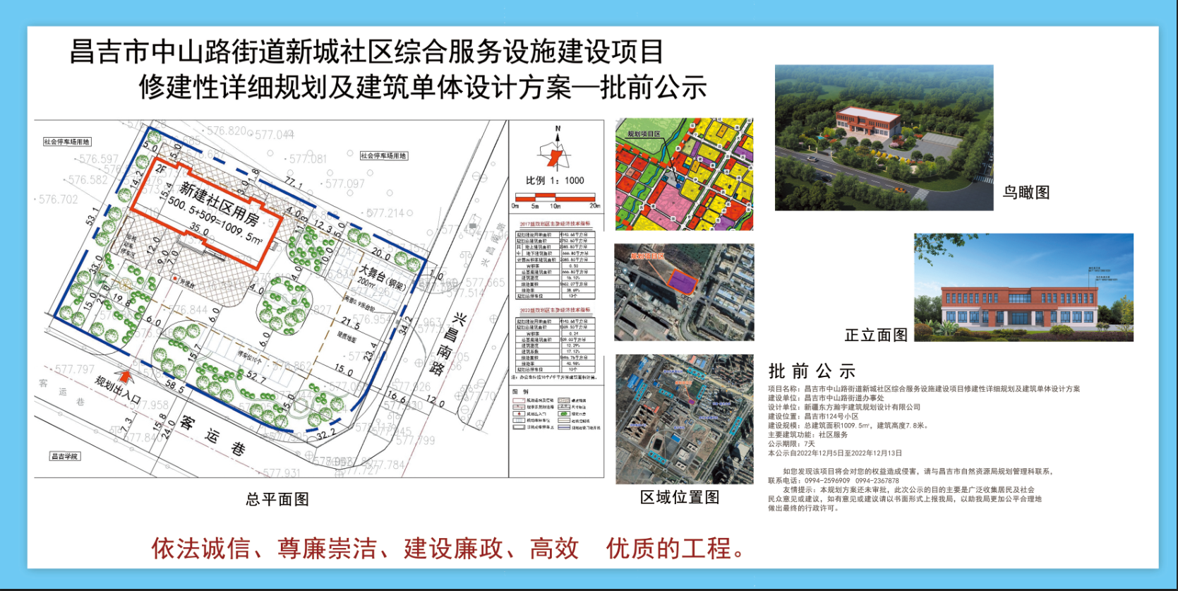 昌吉市中山路街道新城社区综合服务设施建设项目修建性详细规划批前公示