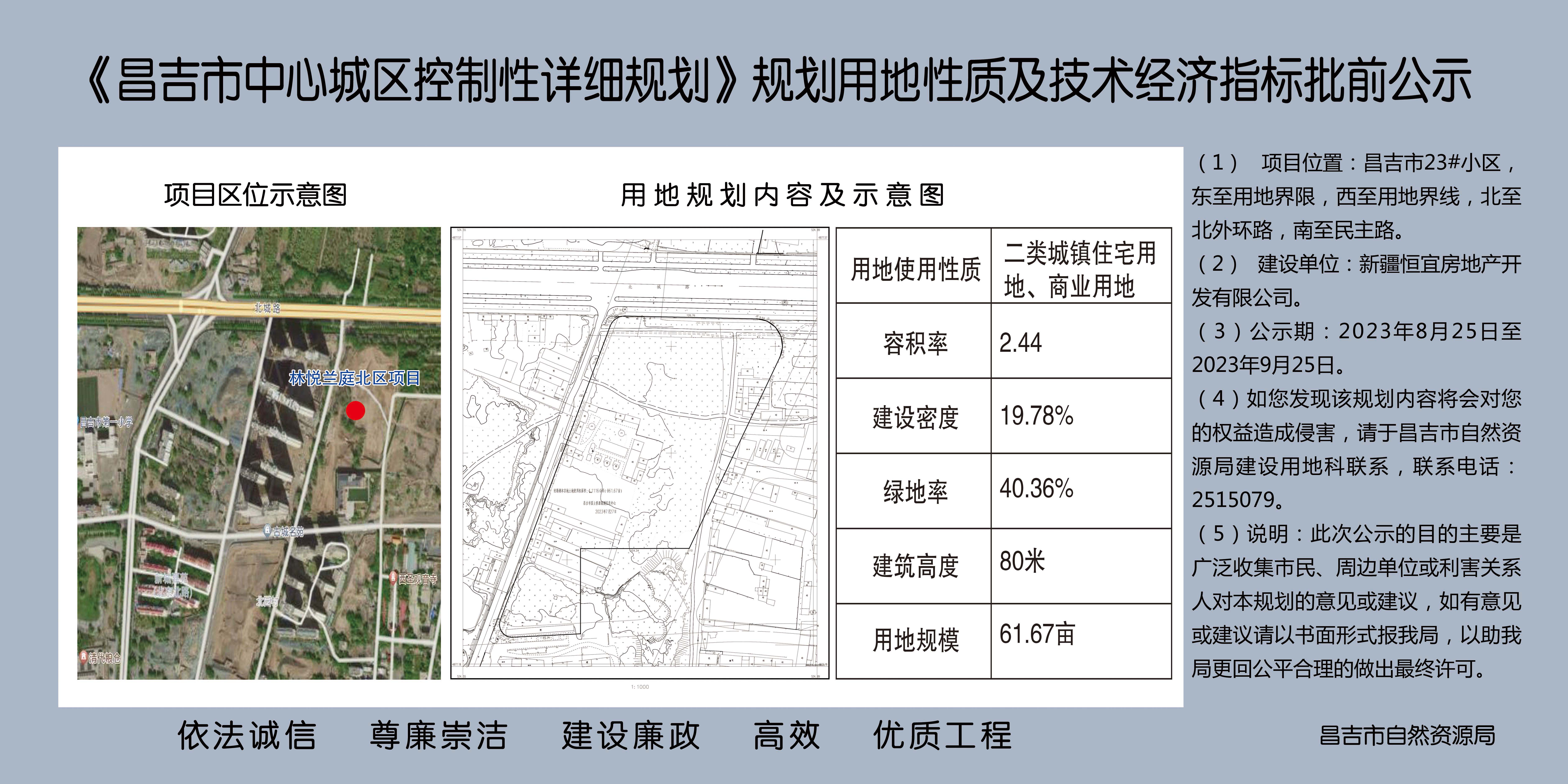 昌吉市中心城区控制性详细规划-规划用地性质及技术经济指标批前公示-新疆恒宜
