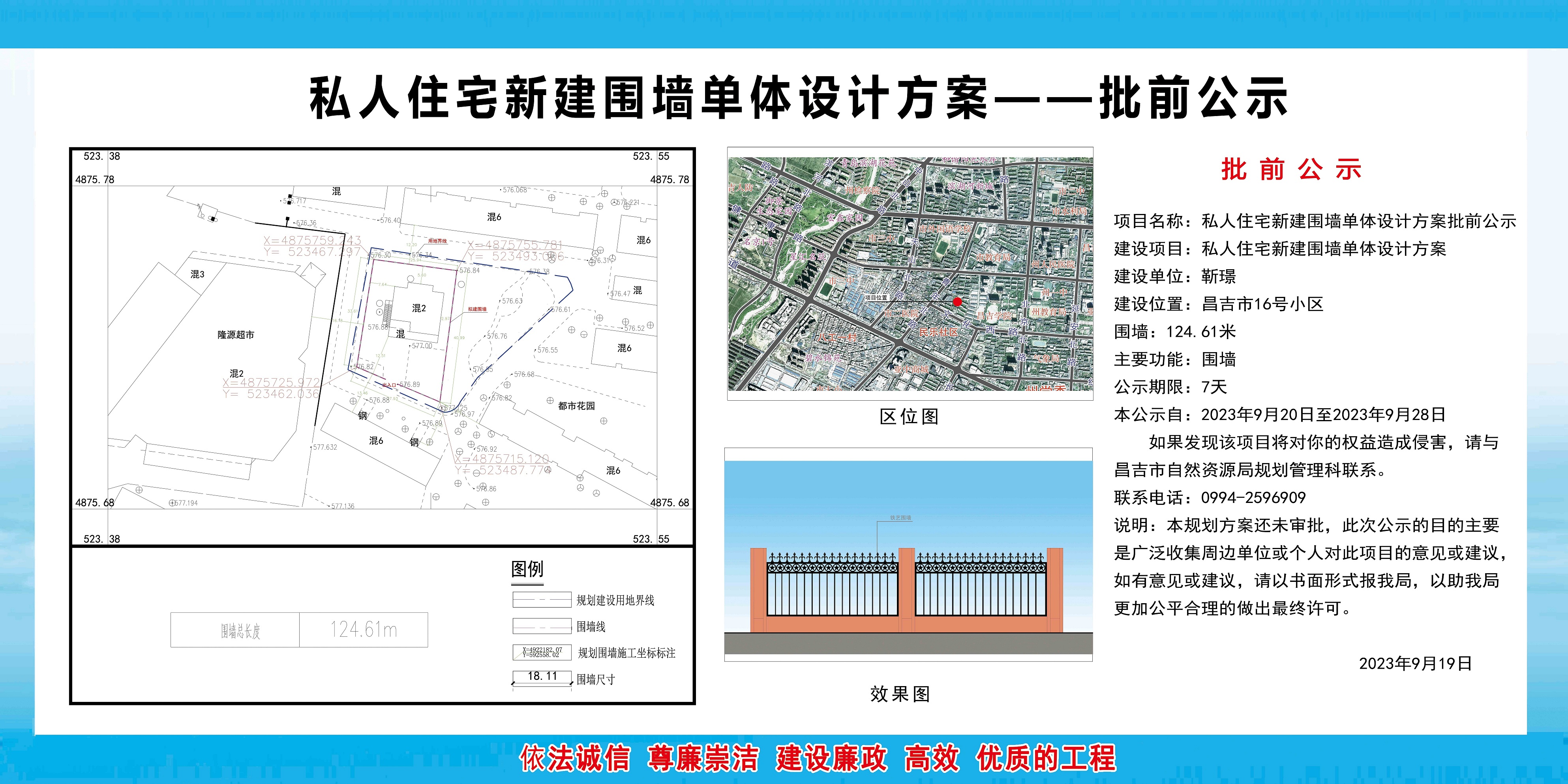| 名 称 | 私人住宅新建围墙单体设计方案批前公示 | ||