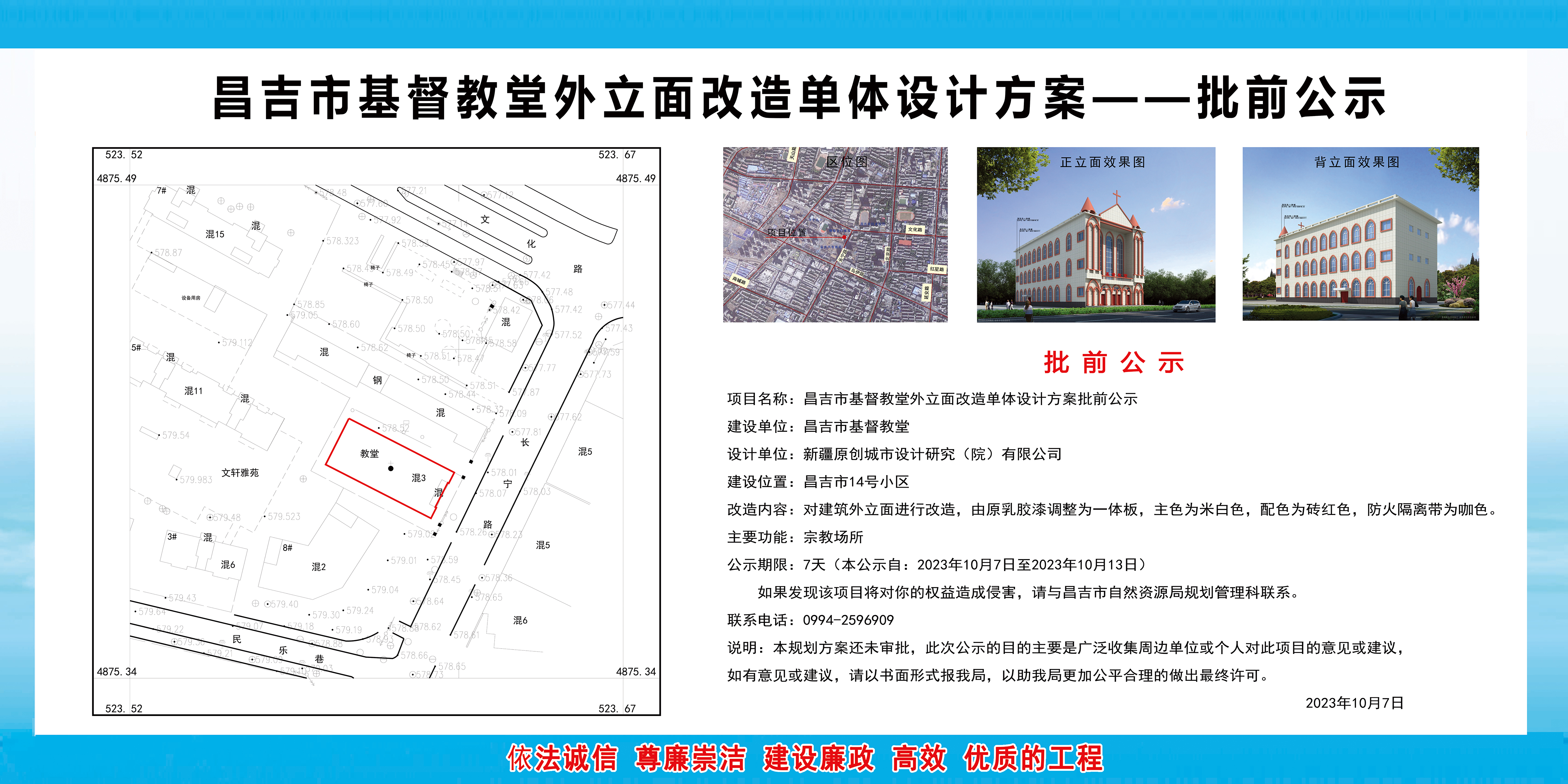 | 名 称 | 昌吉市基督教堂外立面改造单体设计方案批前公示 | ||