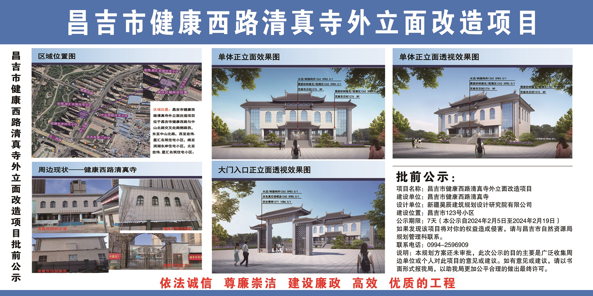 | 名 称 | 昌吉市健康西路清真寺外立面改造项目批前公示 | ||