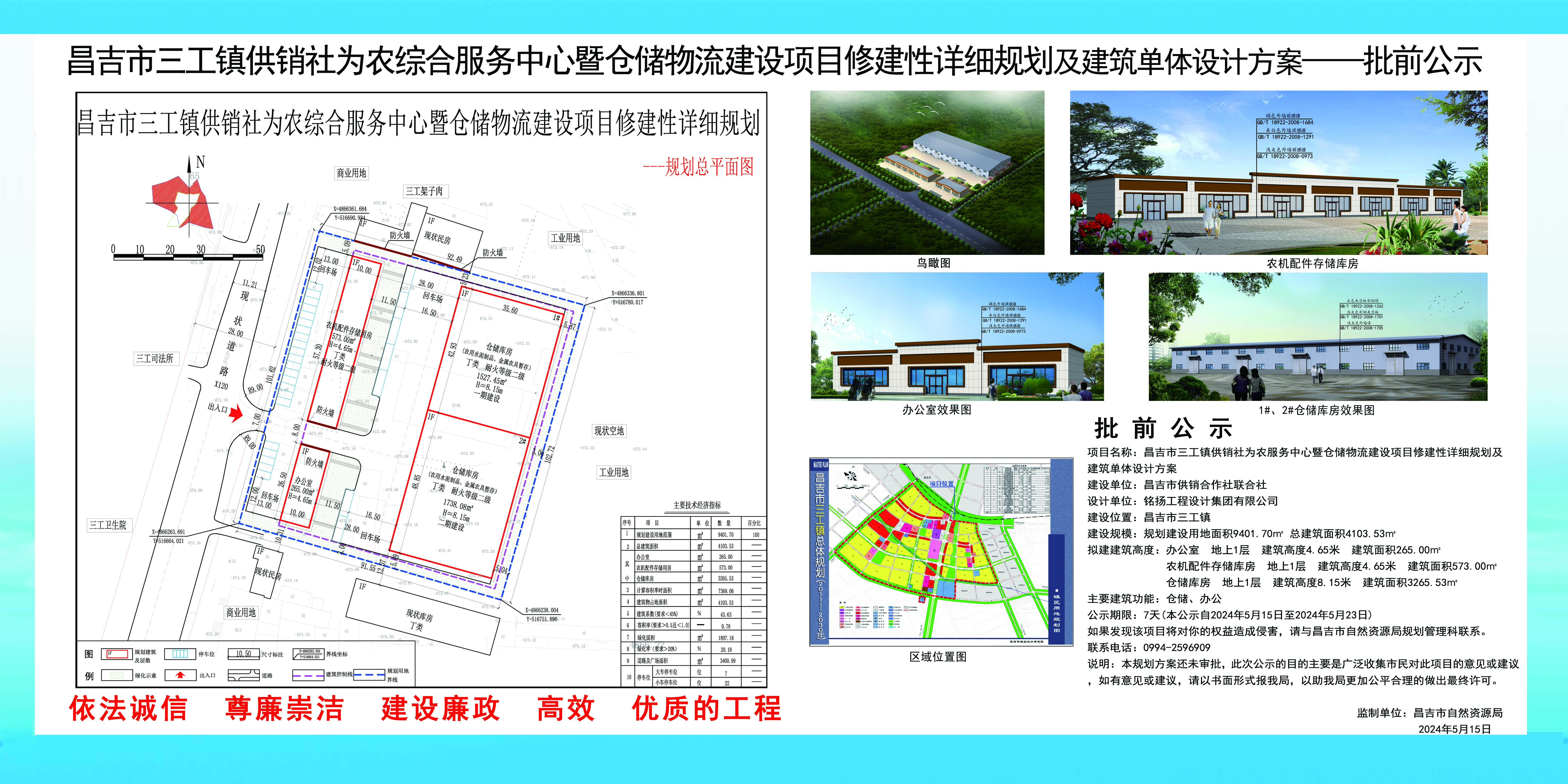 | 名 称 | 昌吉市三工镇供销社为农综合服务中心暨仓储物流项目修建性详细规划批前公示 | ||