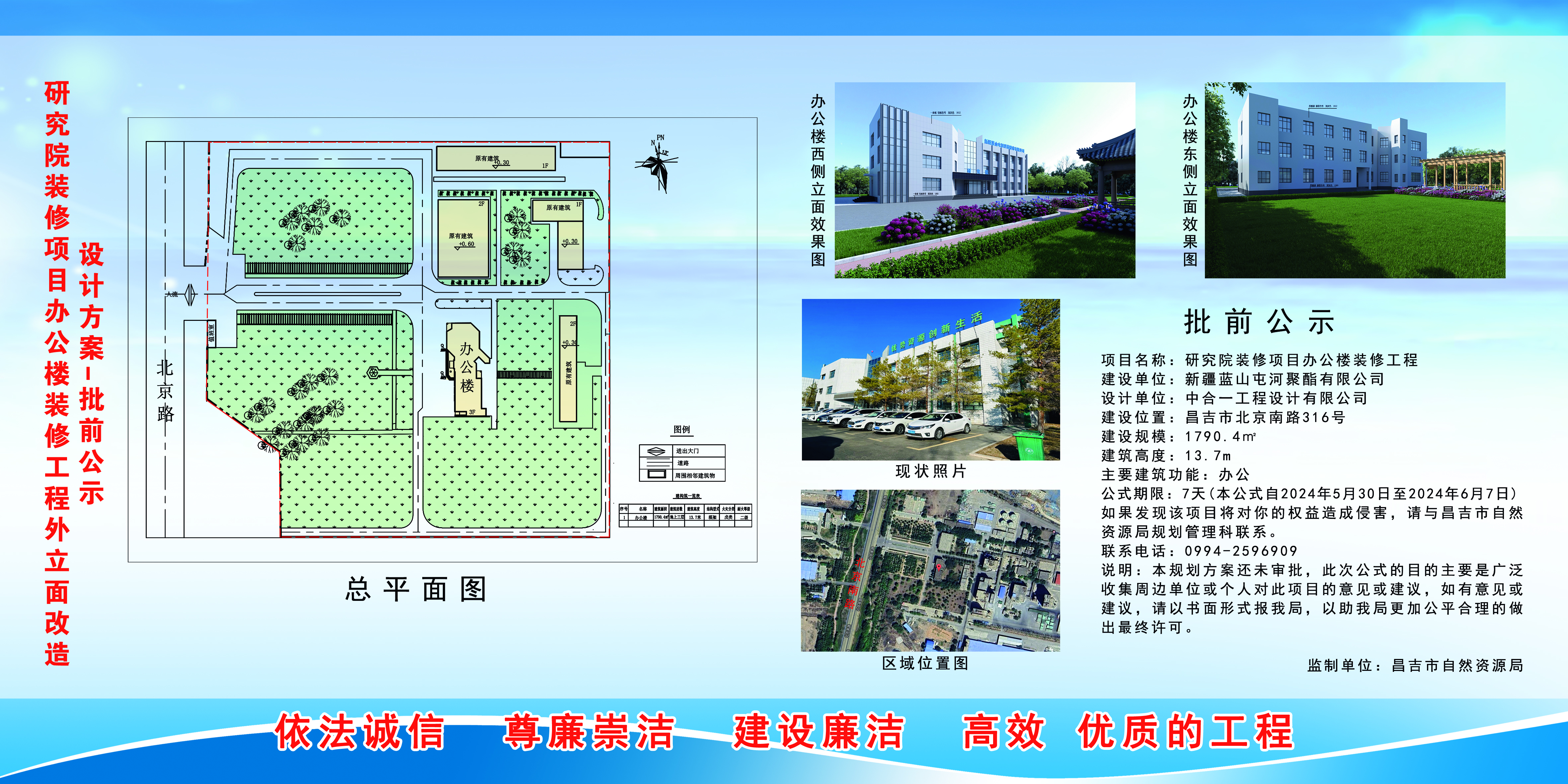 | 名 称 | 研究院装修项目办公楼装修工程外立面改造设计方案批前公示 | ||