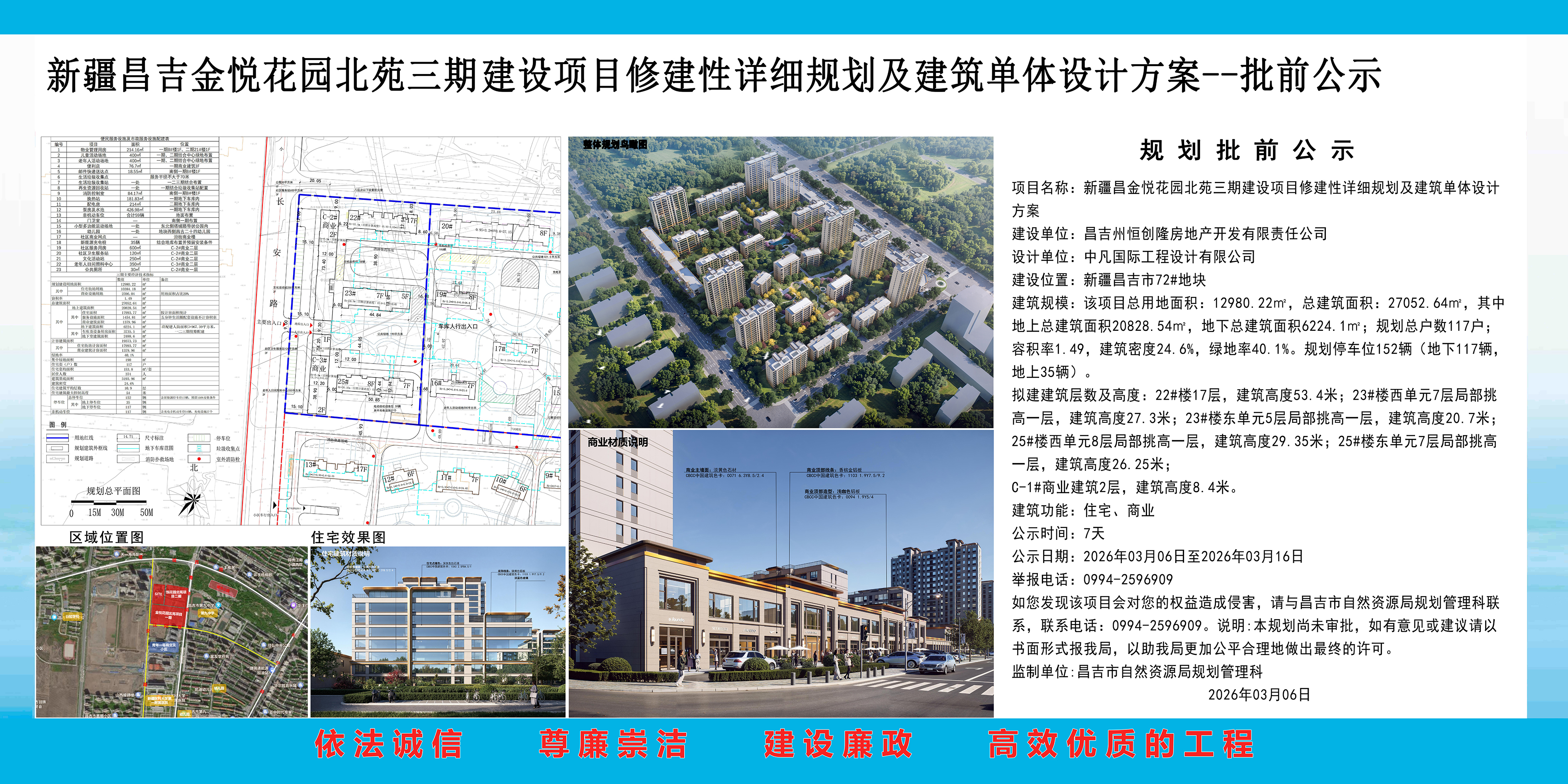 新疆昌吉金悦花园北苑三期建设项目修建性详细规划及建筑单体设计方案批前公示
