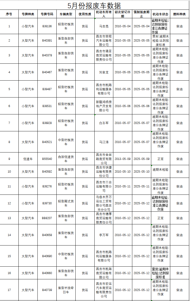 | 名 称 | 【行政强制】以下机动车已达报废标准,请速去办理相关手续 | ||