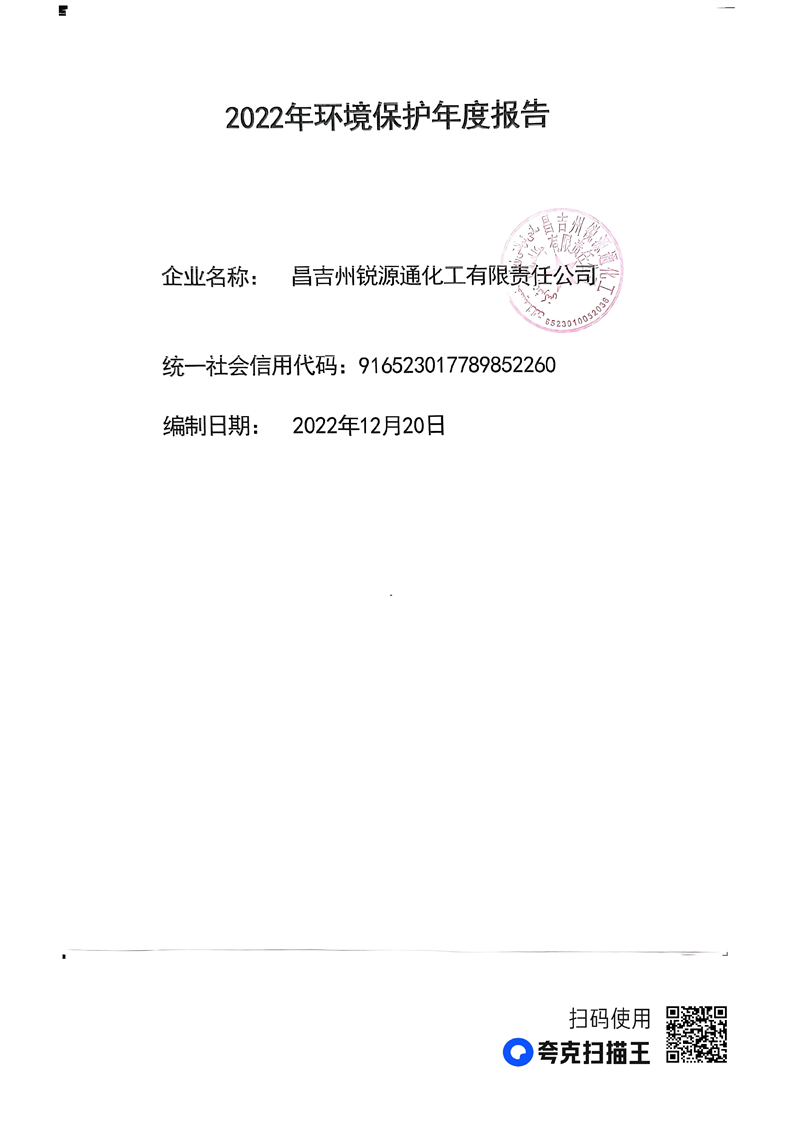 | 名 称 | 昌吉州锐源通化工有限责任公司2022年环境保护年度报告 | ||