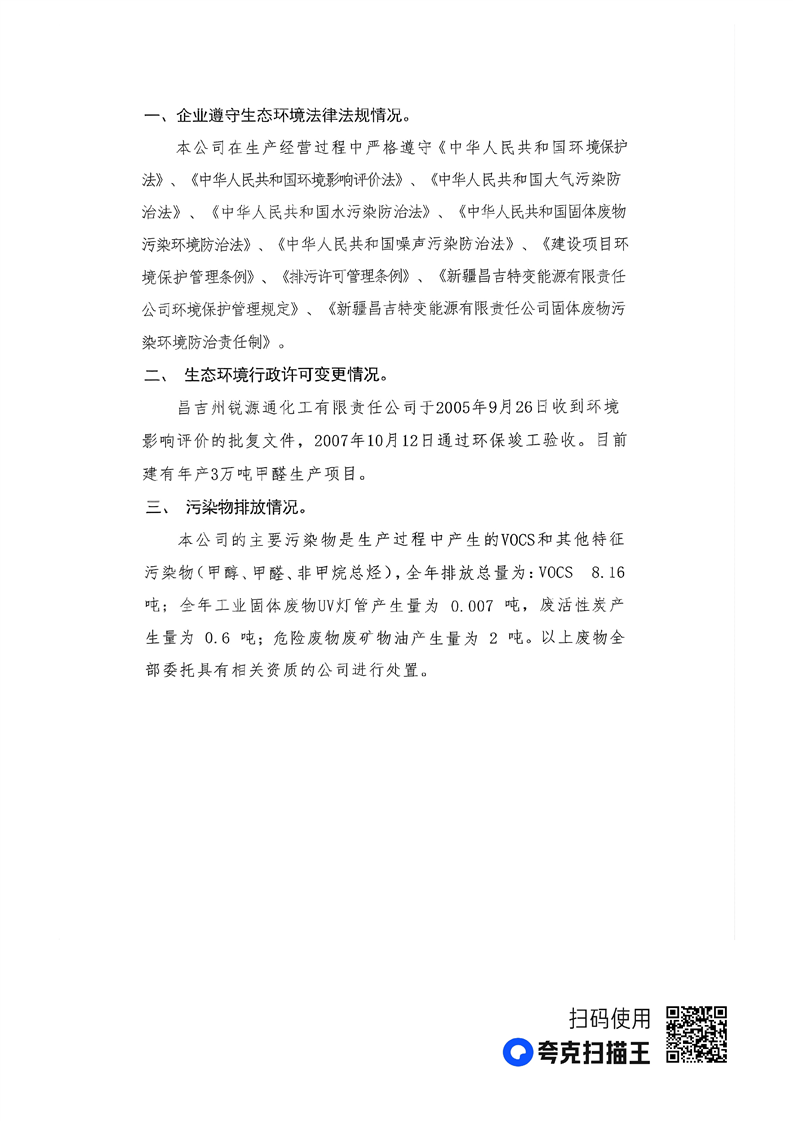 昌吉州锐源通化工有限责任公司2022年环境保护年度报告