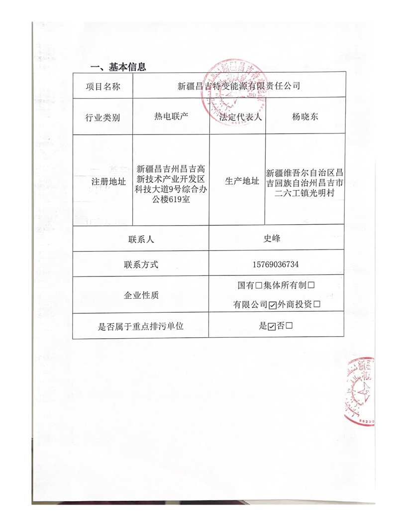 | 名 称 | 昌吉特变能源有限公司临时环境信息依法披露报告 | ||
