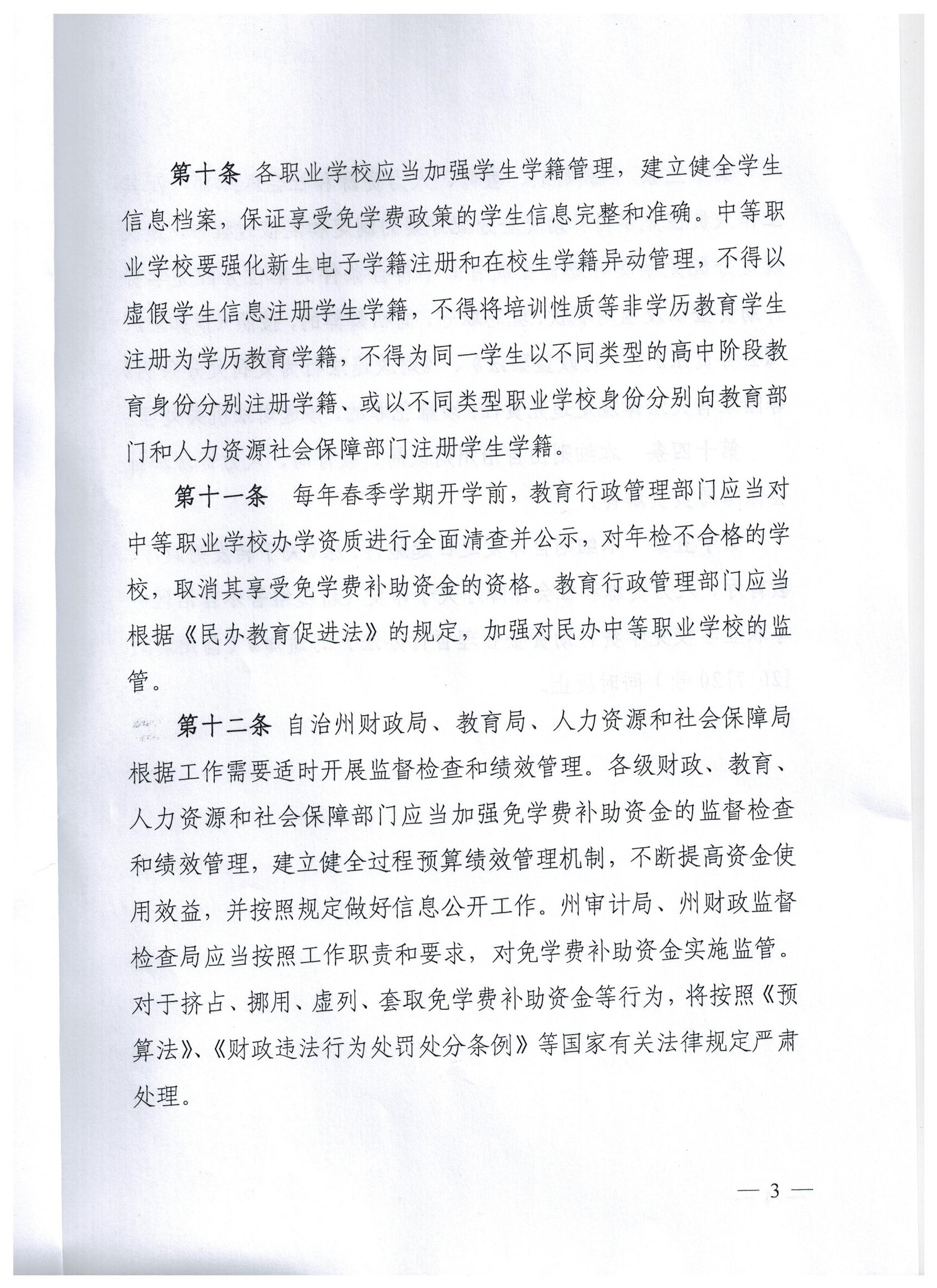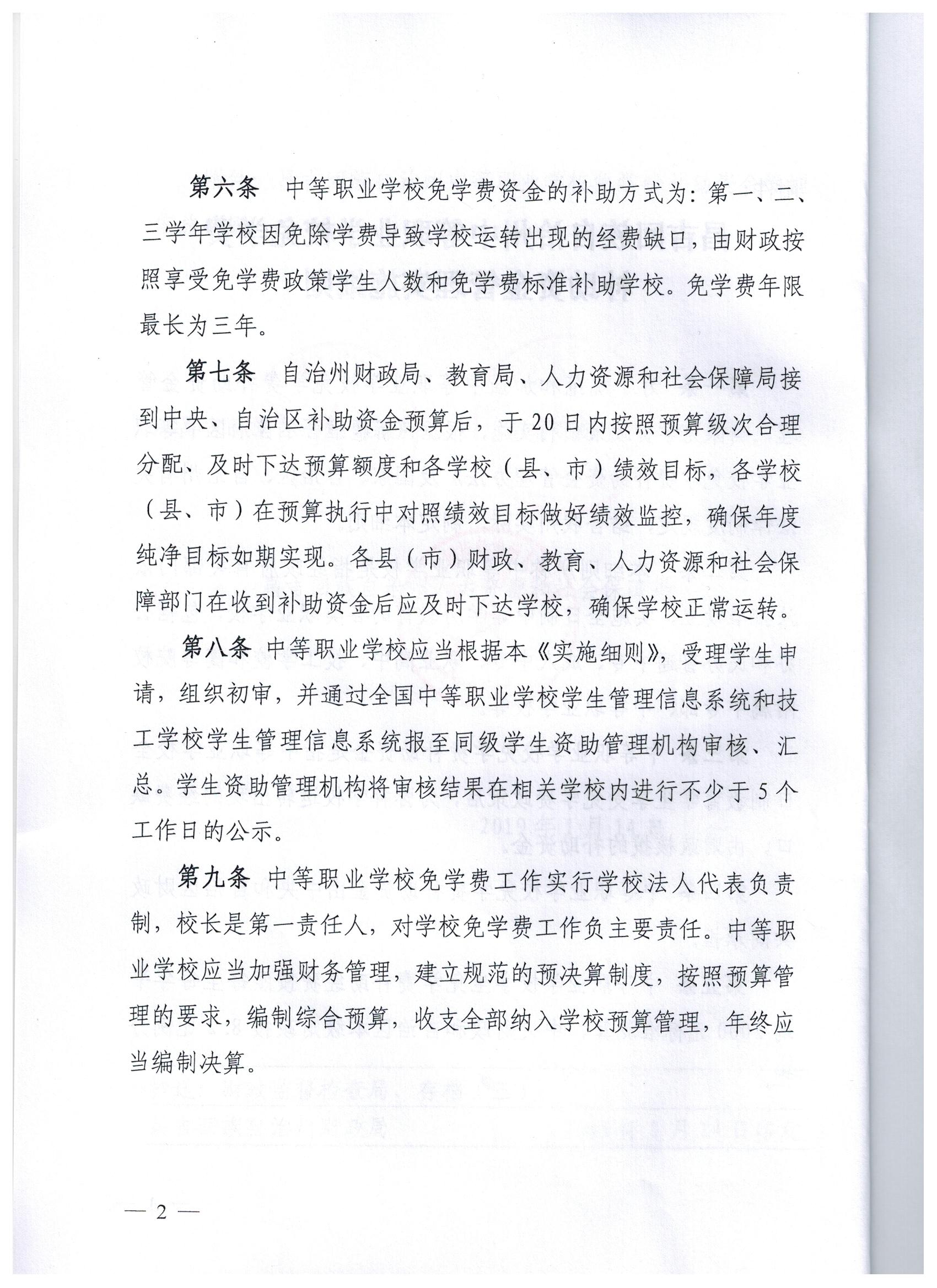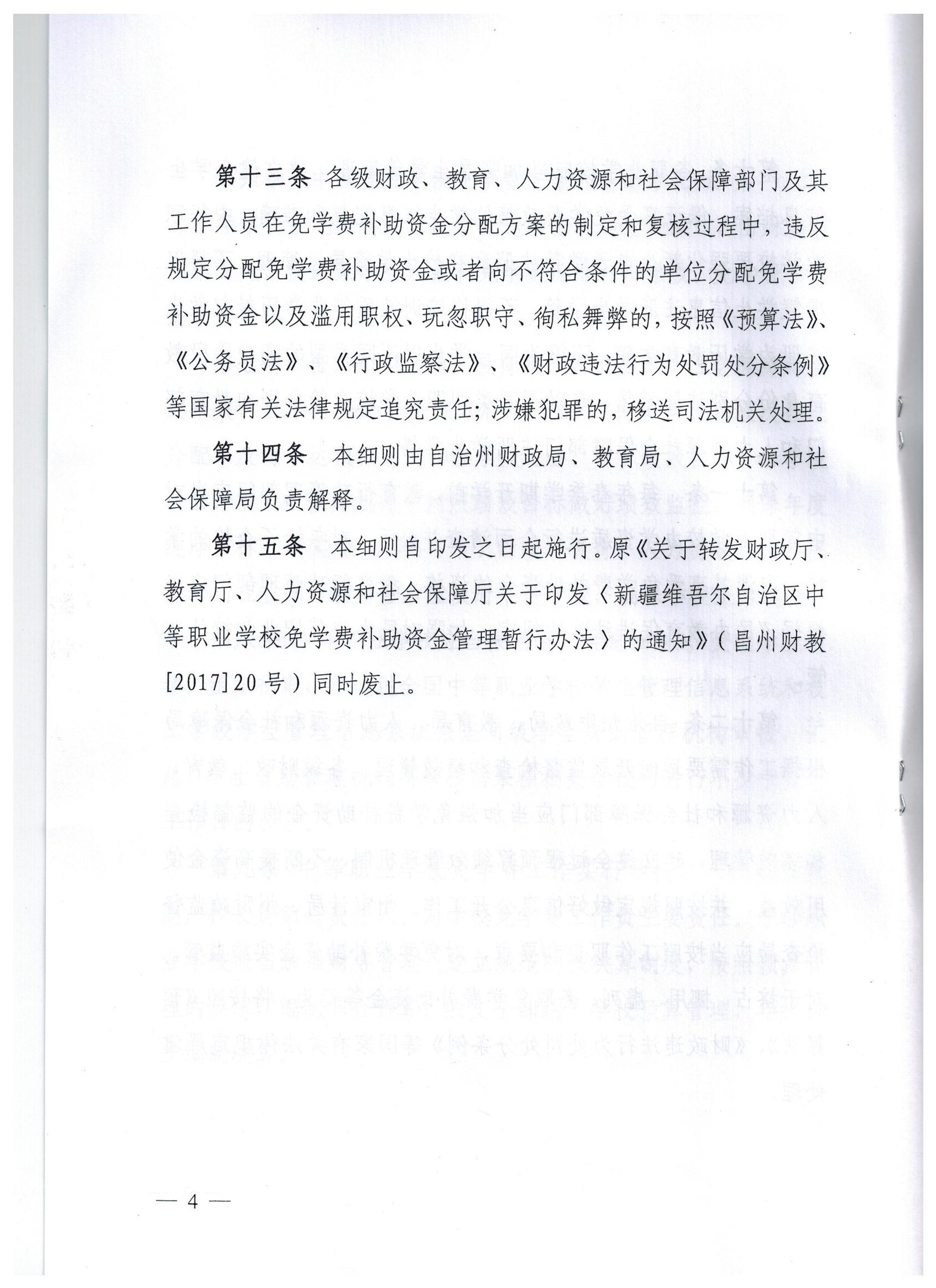 | 名 称 | 昌吉回族自治州中等职业学校免学费补助资金管理实施细则 | ||