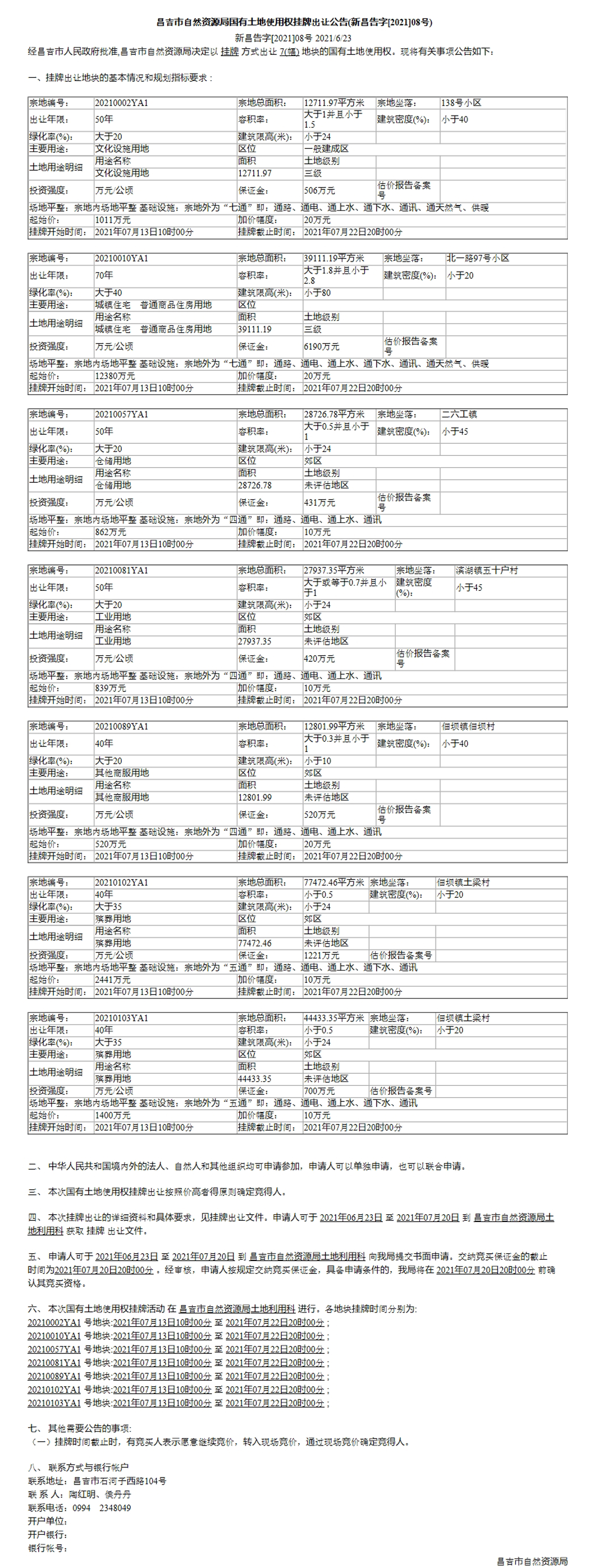 昌吉市自然资源局国有土地使用权挂牌出让公告(新昌告字[2021]08号)