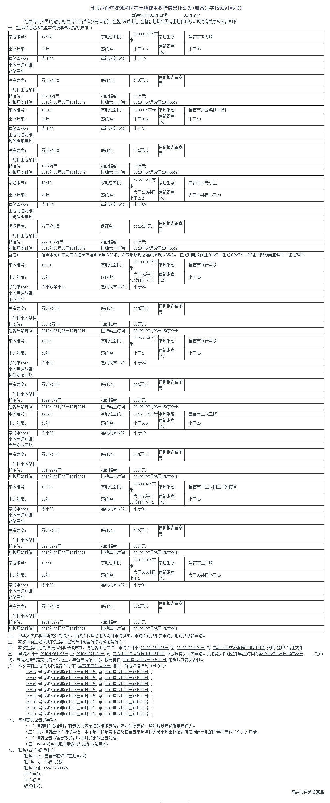 | 文 号 | 主 题 词 | 昌吉市 自然资源 国有土地使用权 挂牌出让 新昌 2019 05 | |