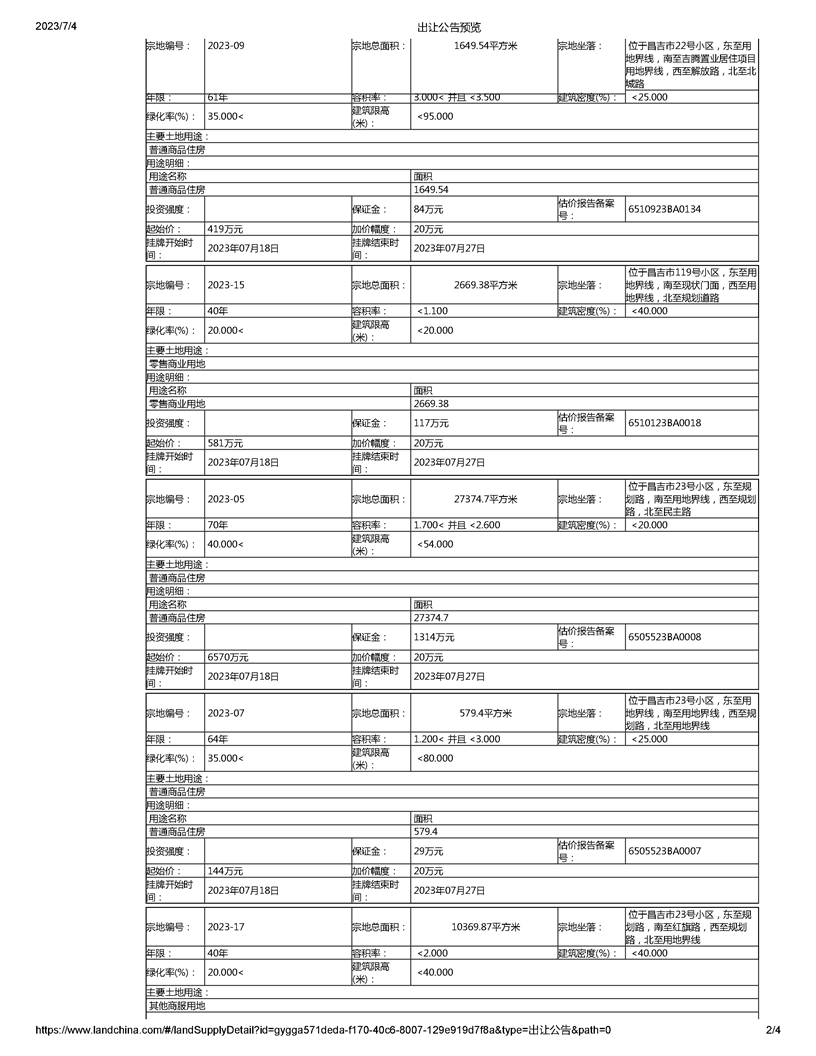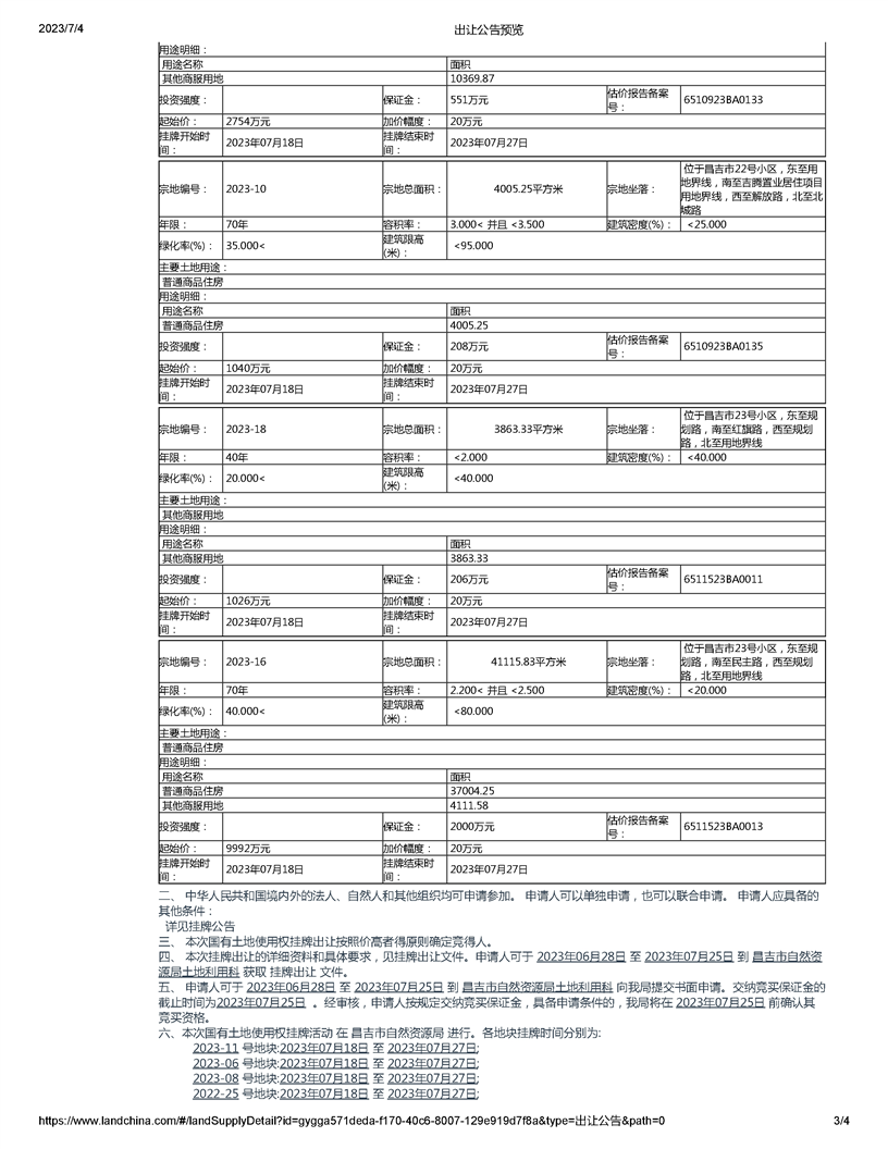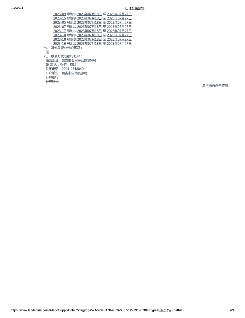 | 名 称 | 昌吉市自然资源局国有土地使用权挂牌出让公告(新昌告字[2023]02号) | ||