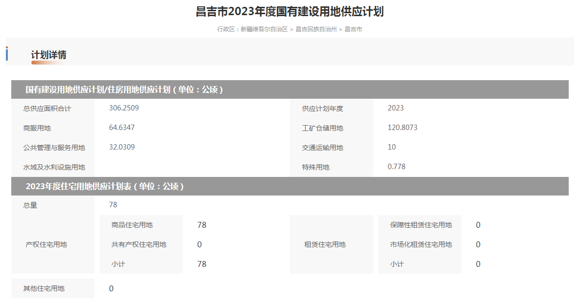 | 名 称 | 昌吉市2023年度国有建设用地供应计划 | ||