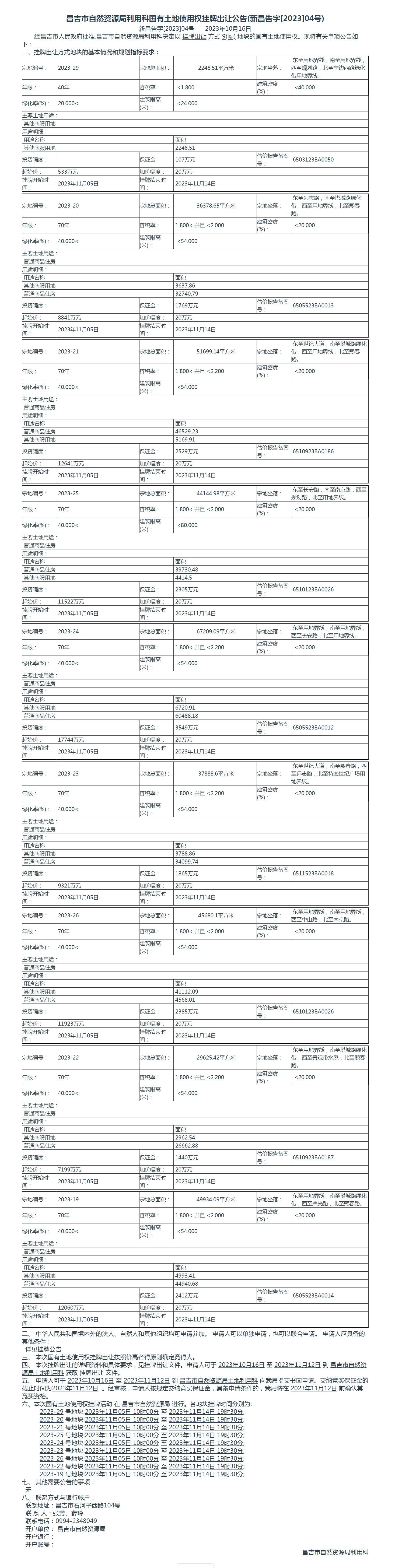 | 文 号 | 主 题 词 | 昌吉市 自然资源 国有土地使用权 挂牌出让 新昌 2023 04 | |