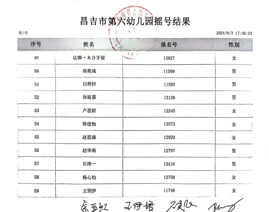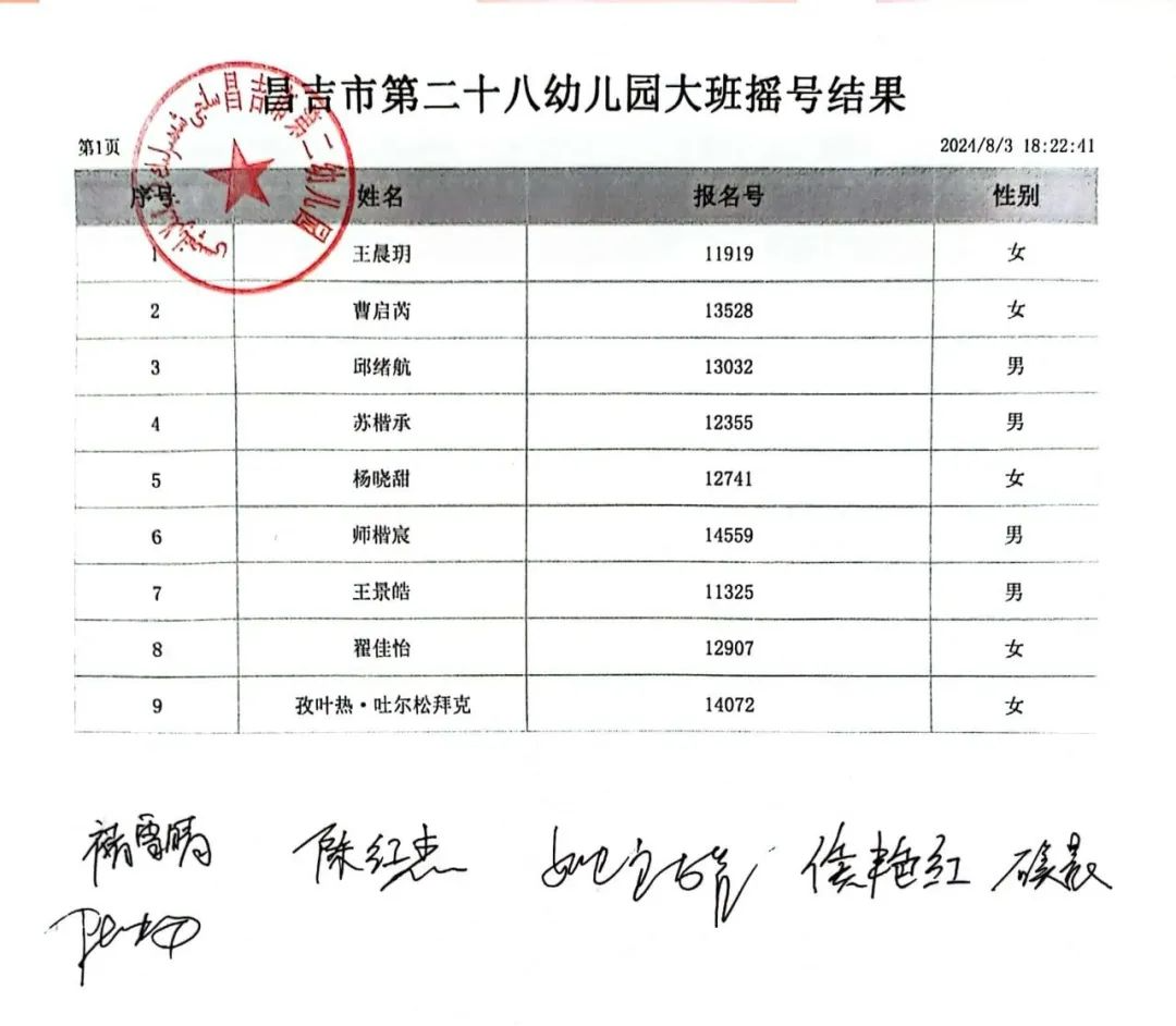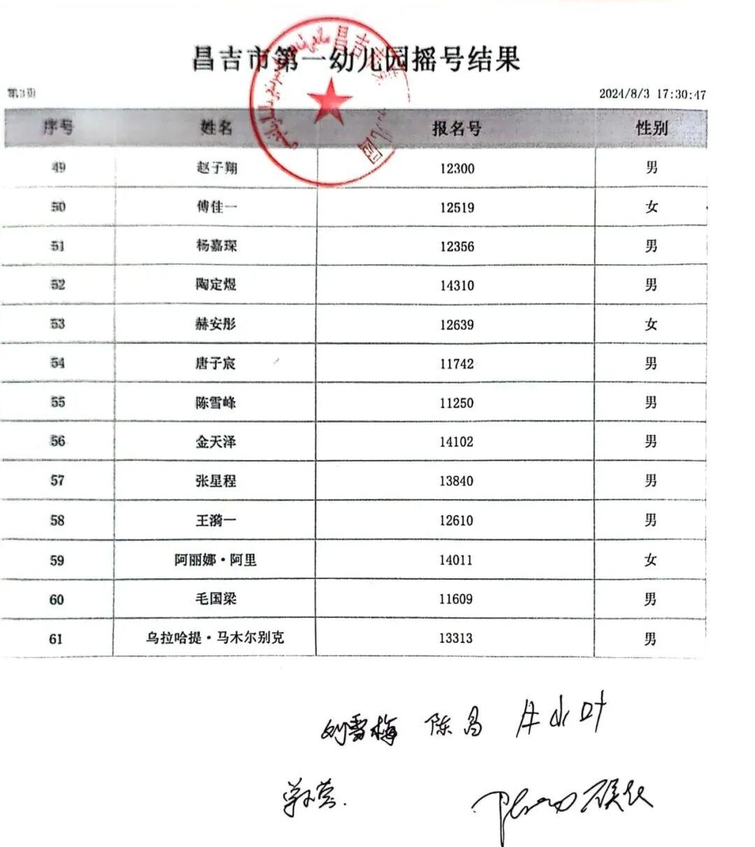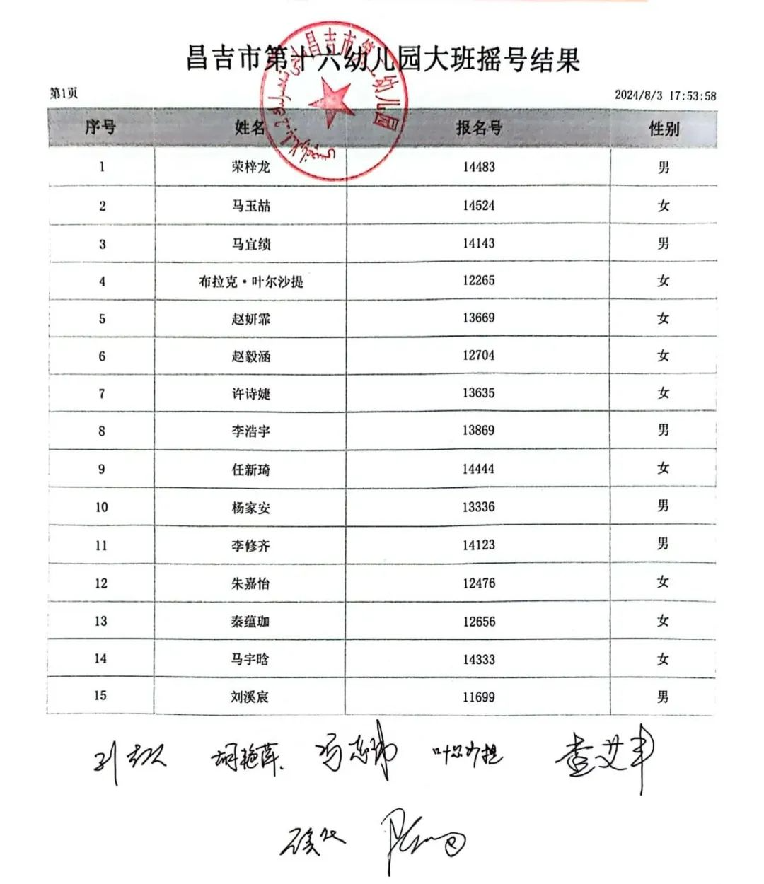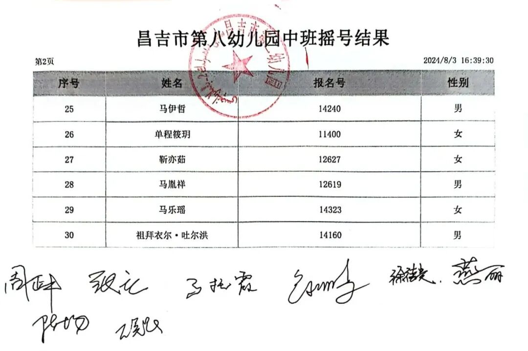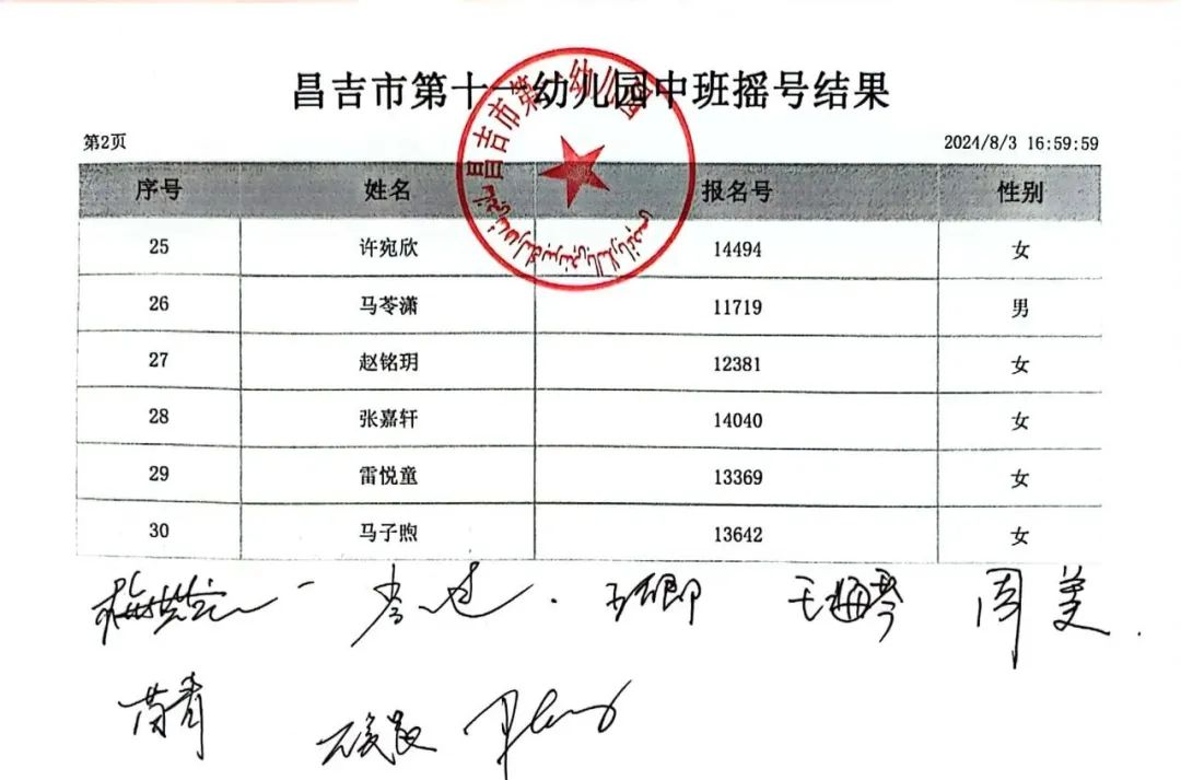 昌吉市2024年秋季城区公办园电脑摇号派位结果公示