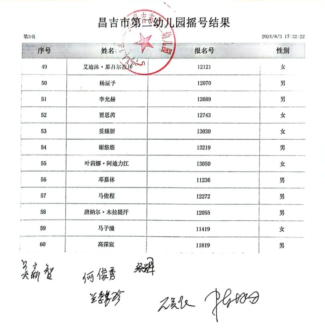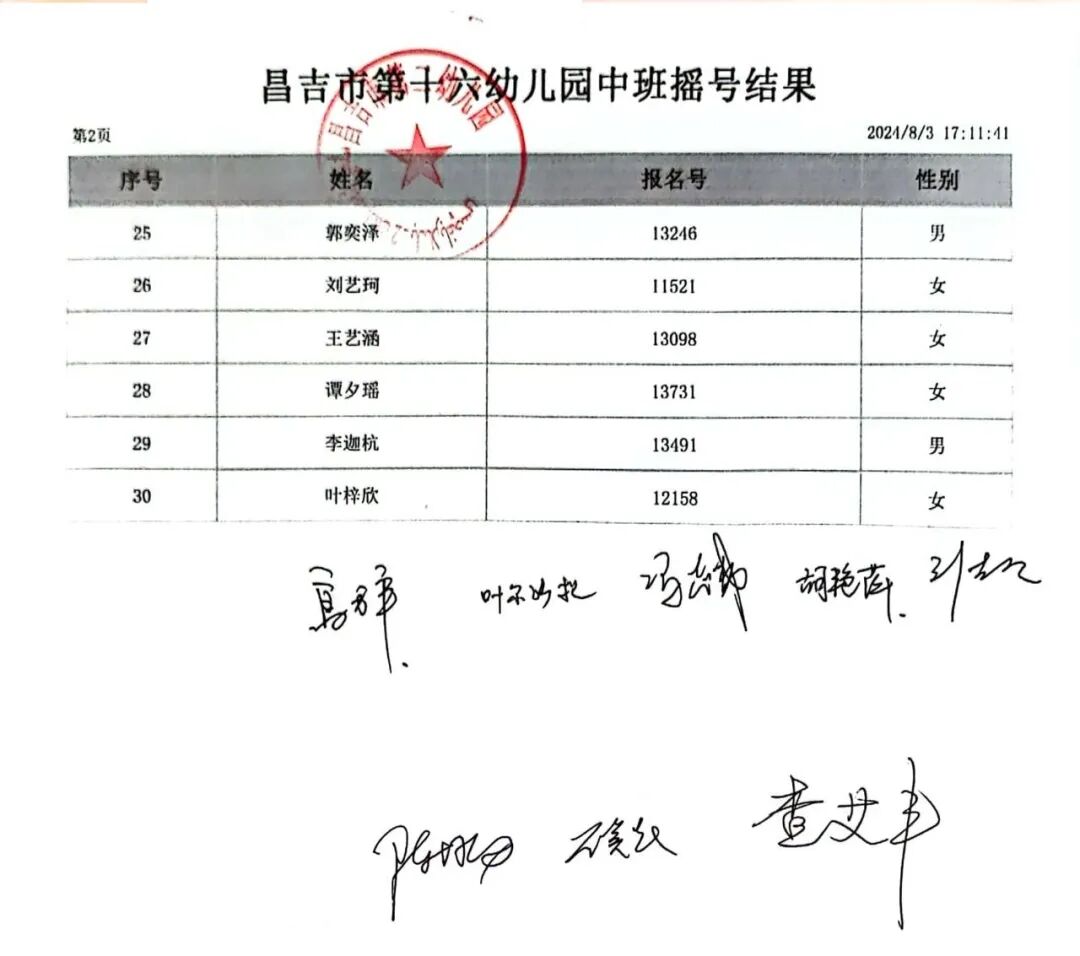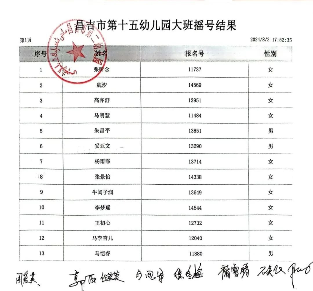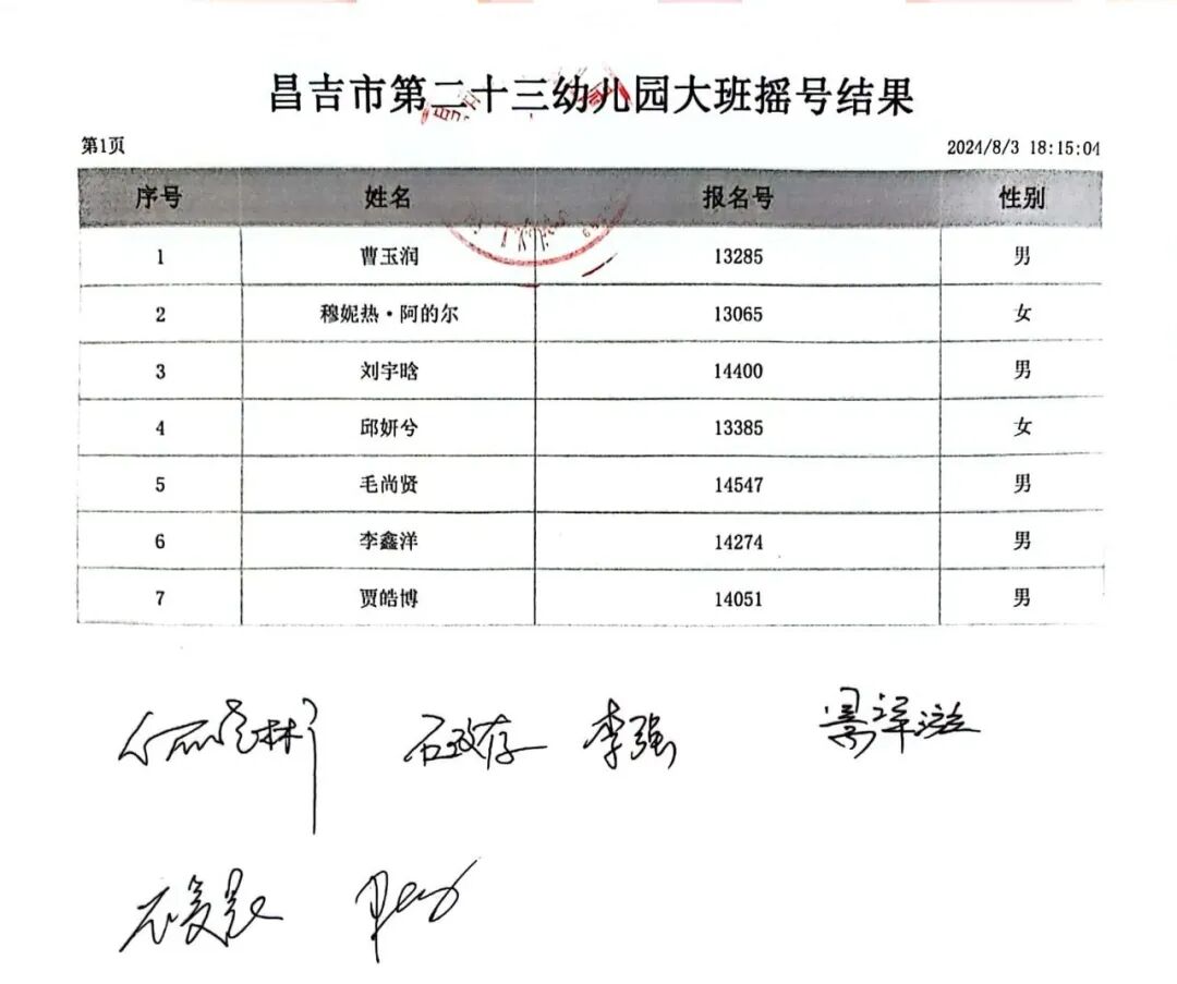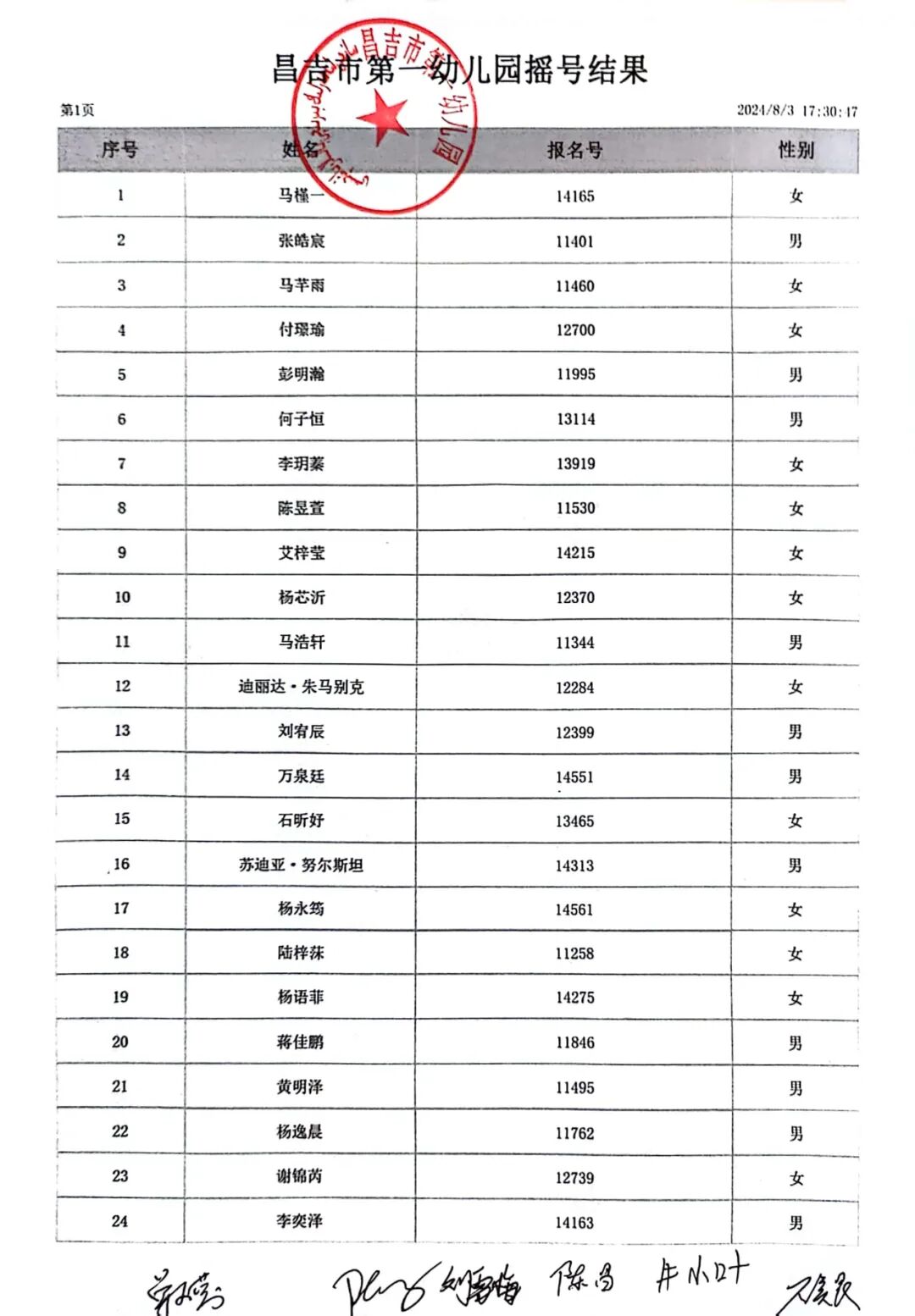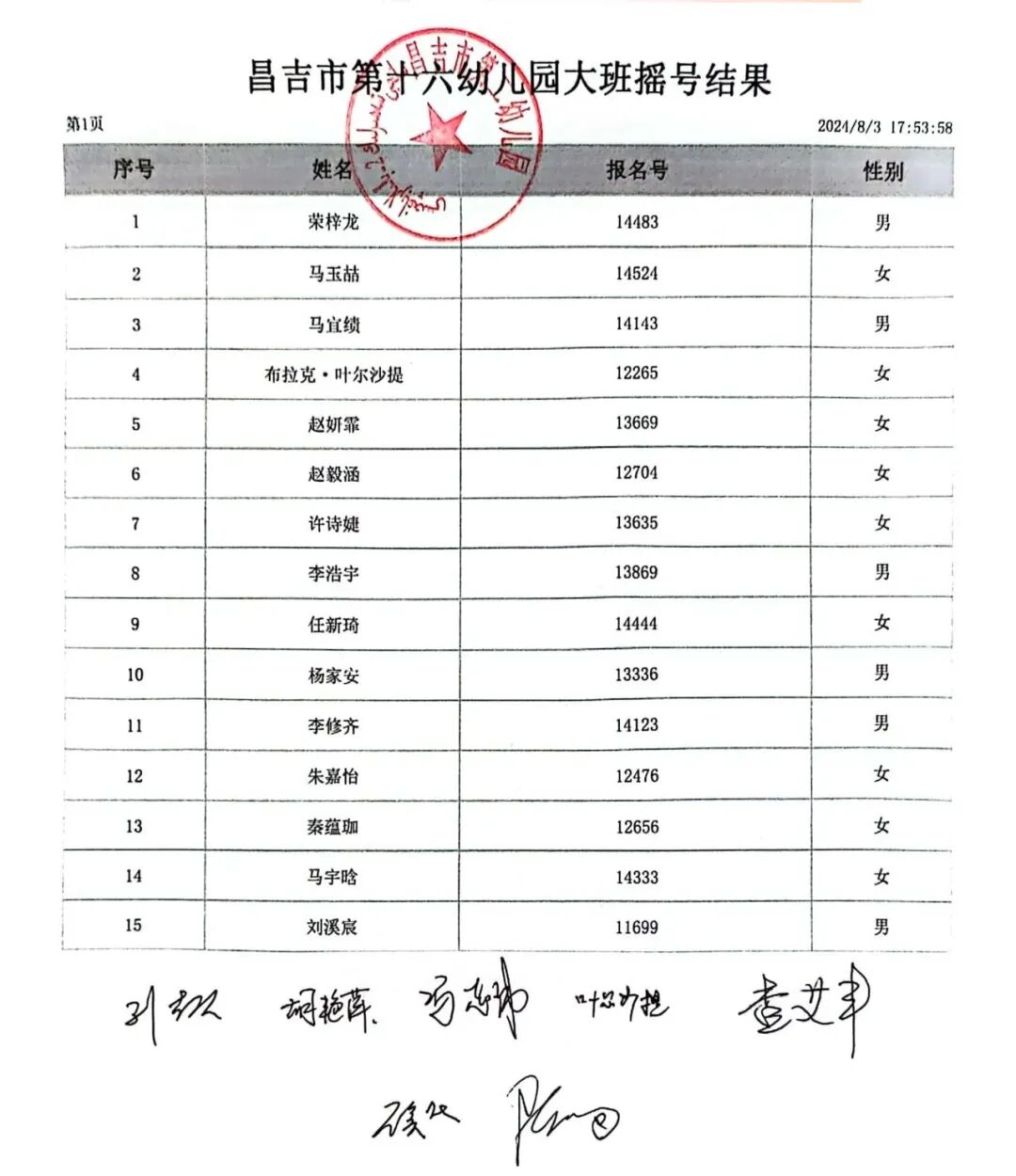 昌吉市2024年秋季城区公办园电脑摇号派位结果公示